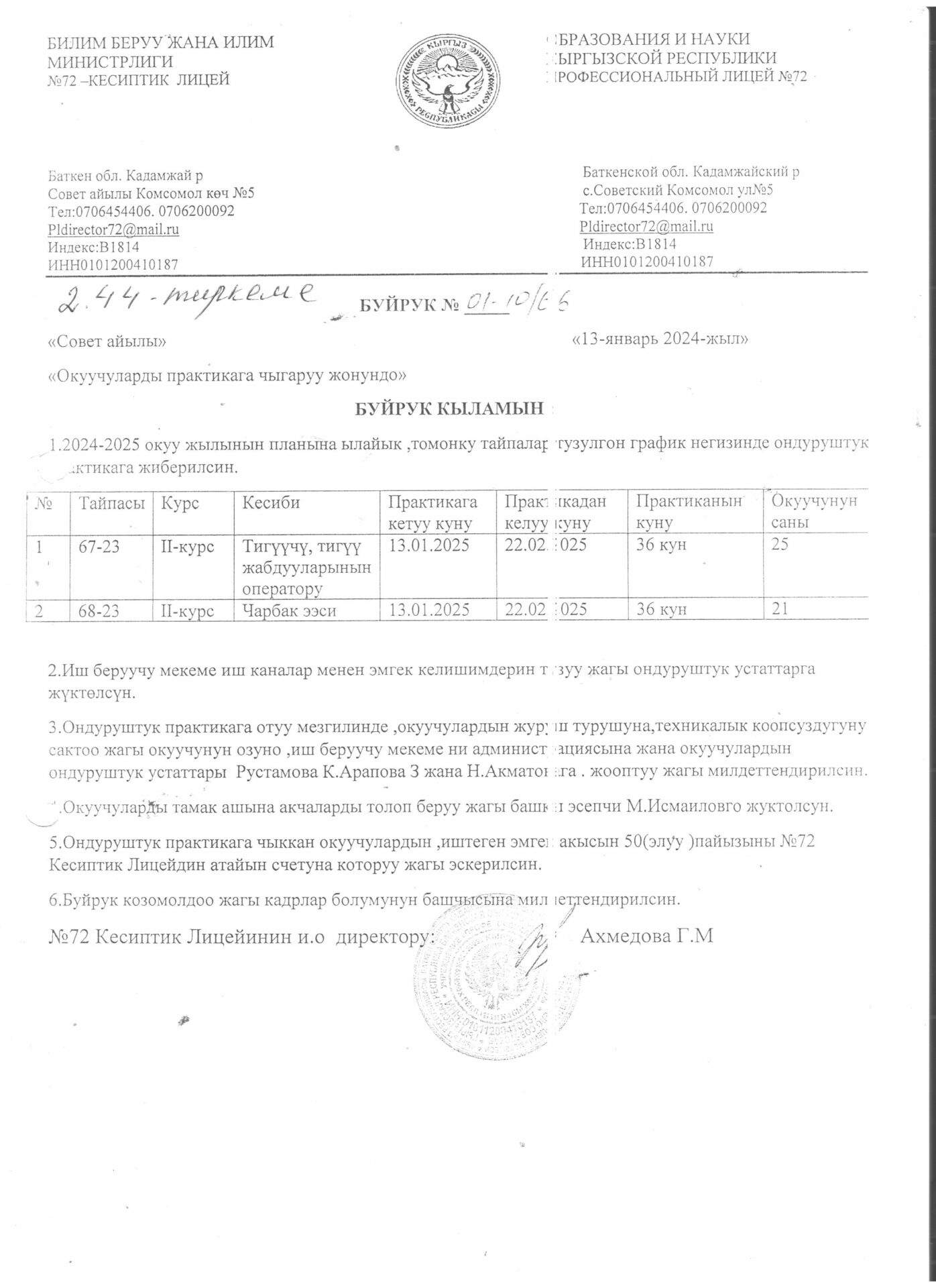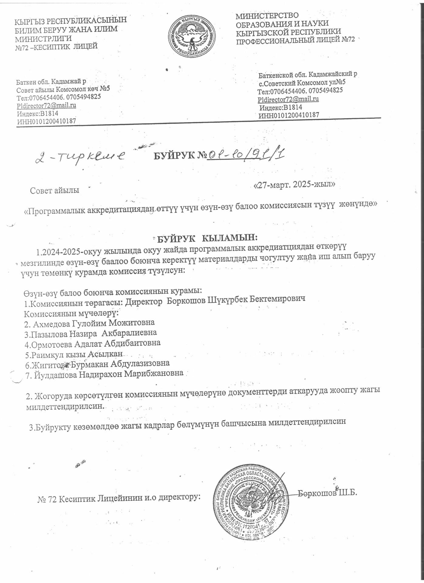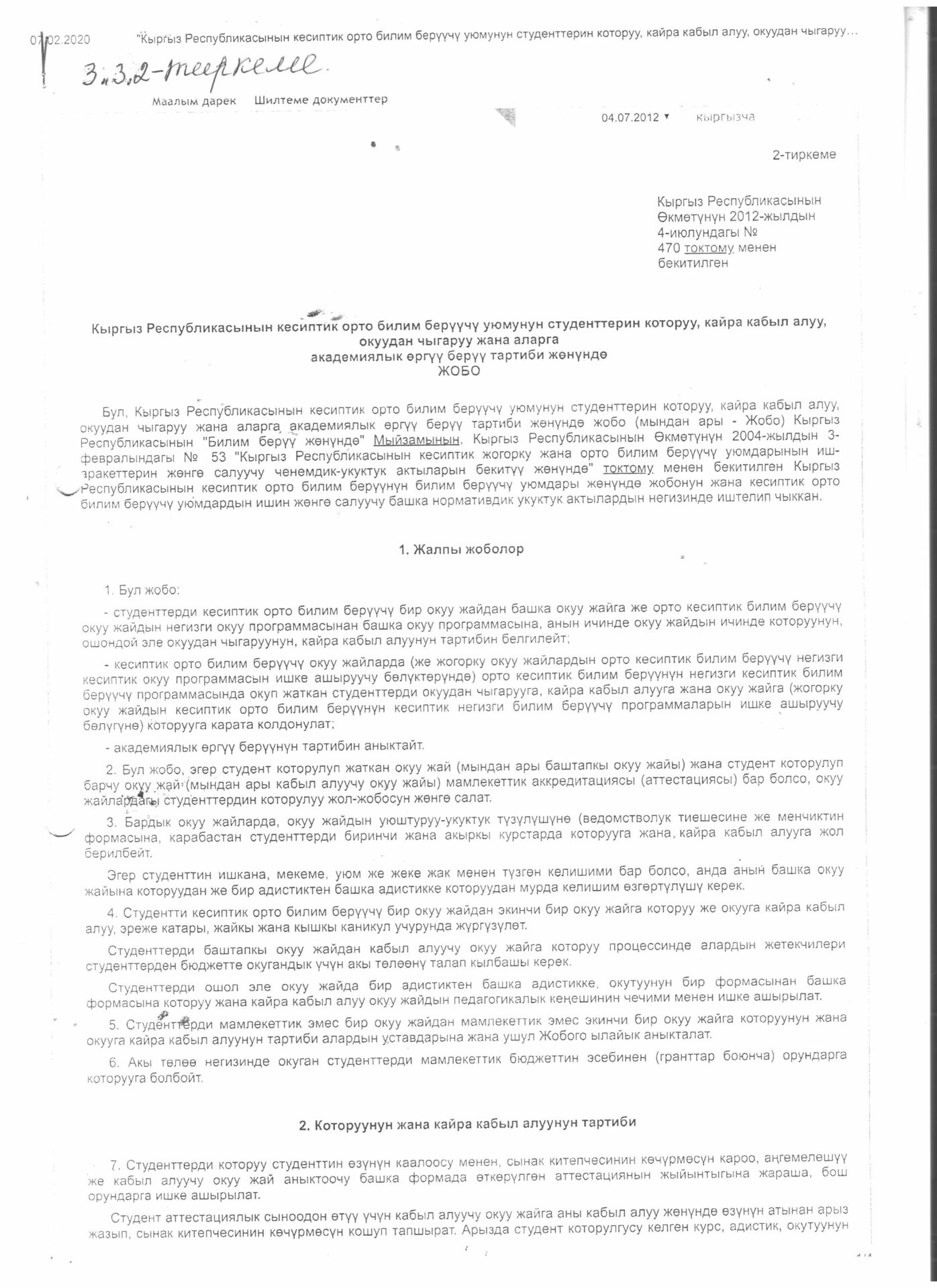 2-тиркеме Буйрук
