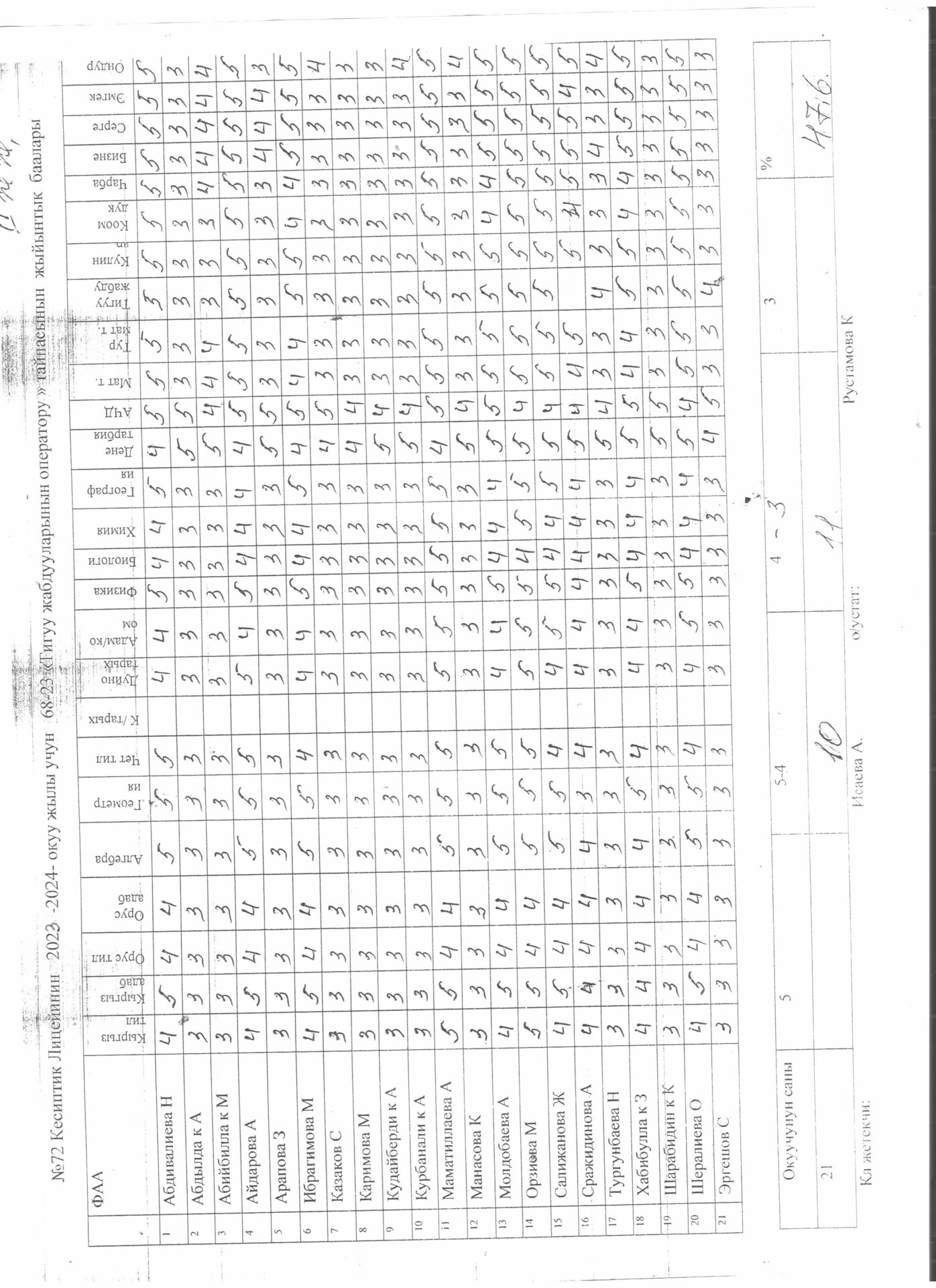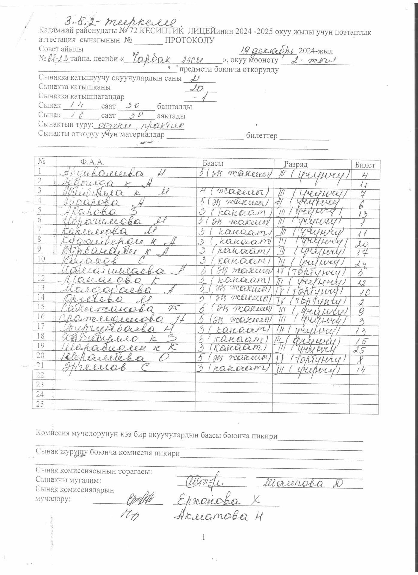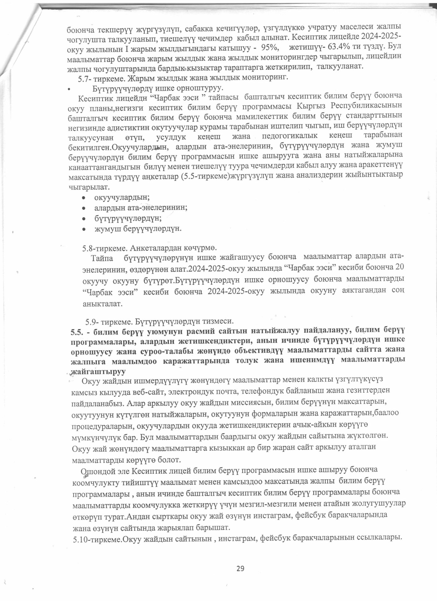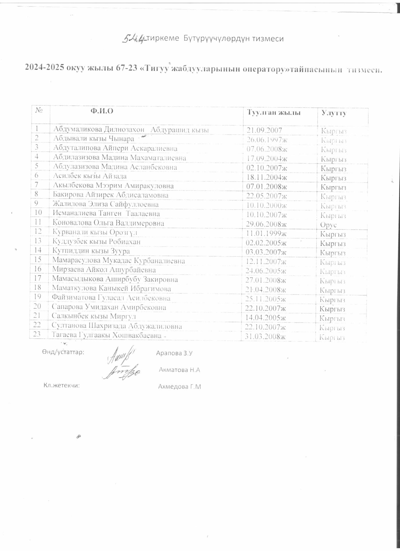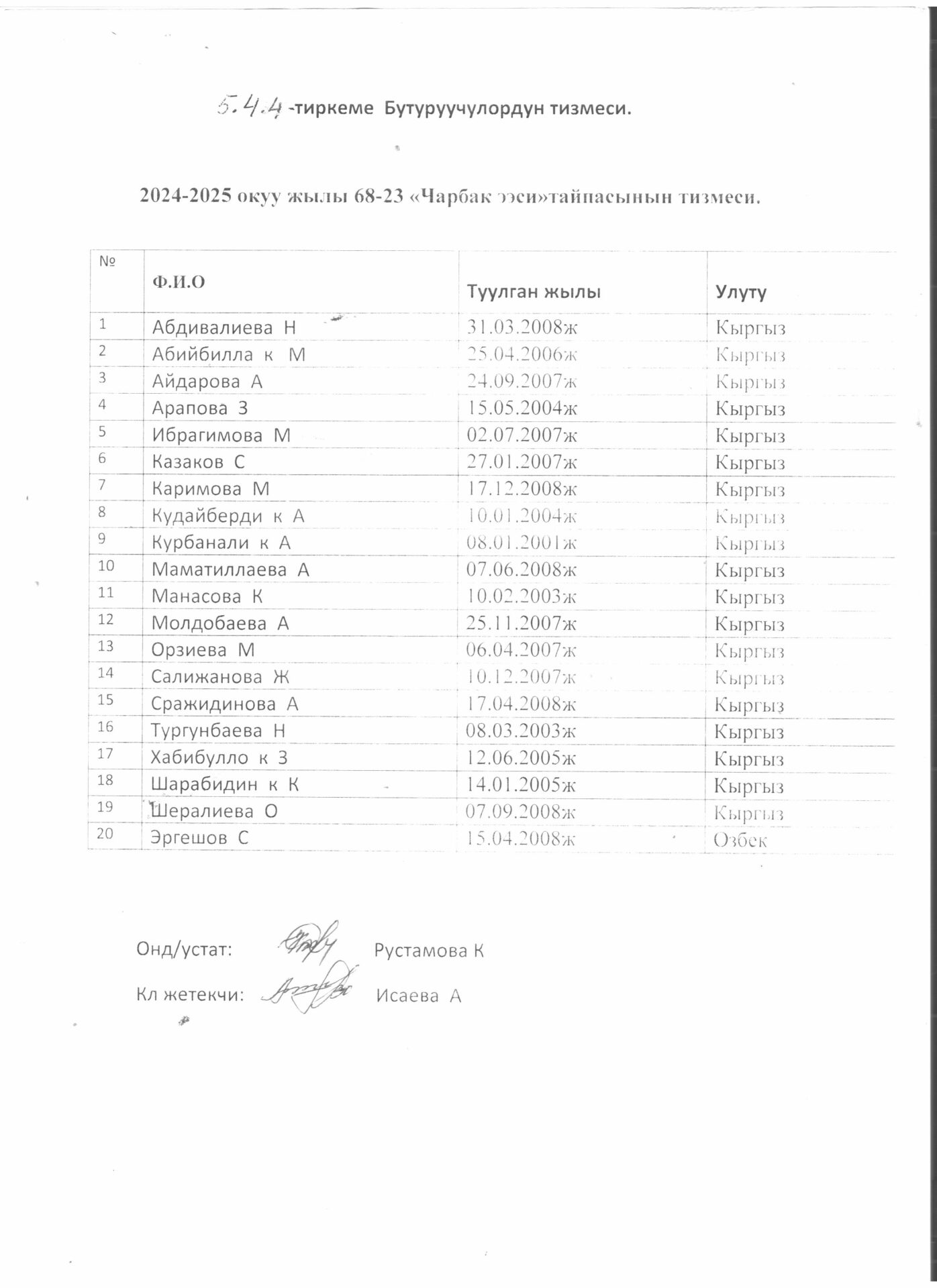 5.4.4.. тиркеме Бүтүрүүчүлөрдүн тизмеси