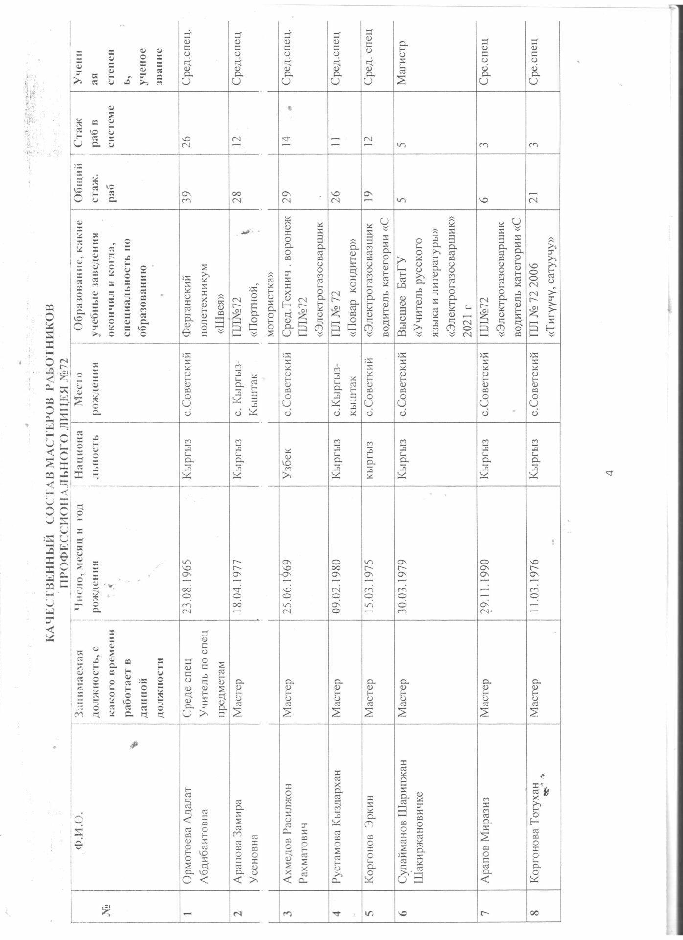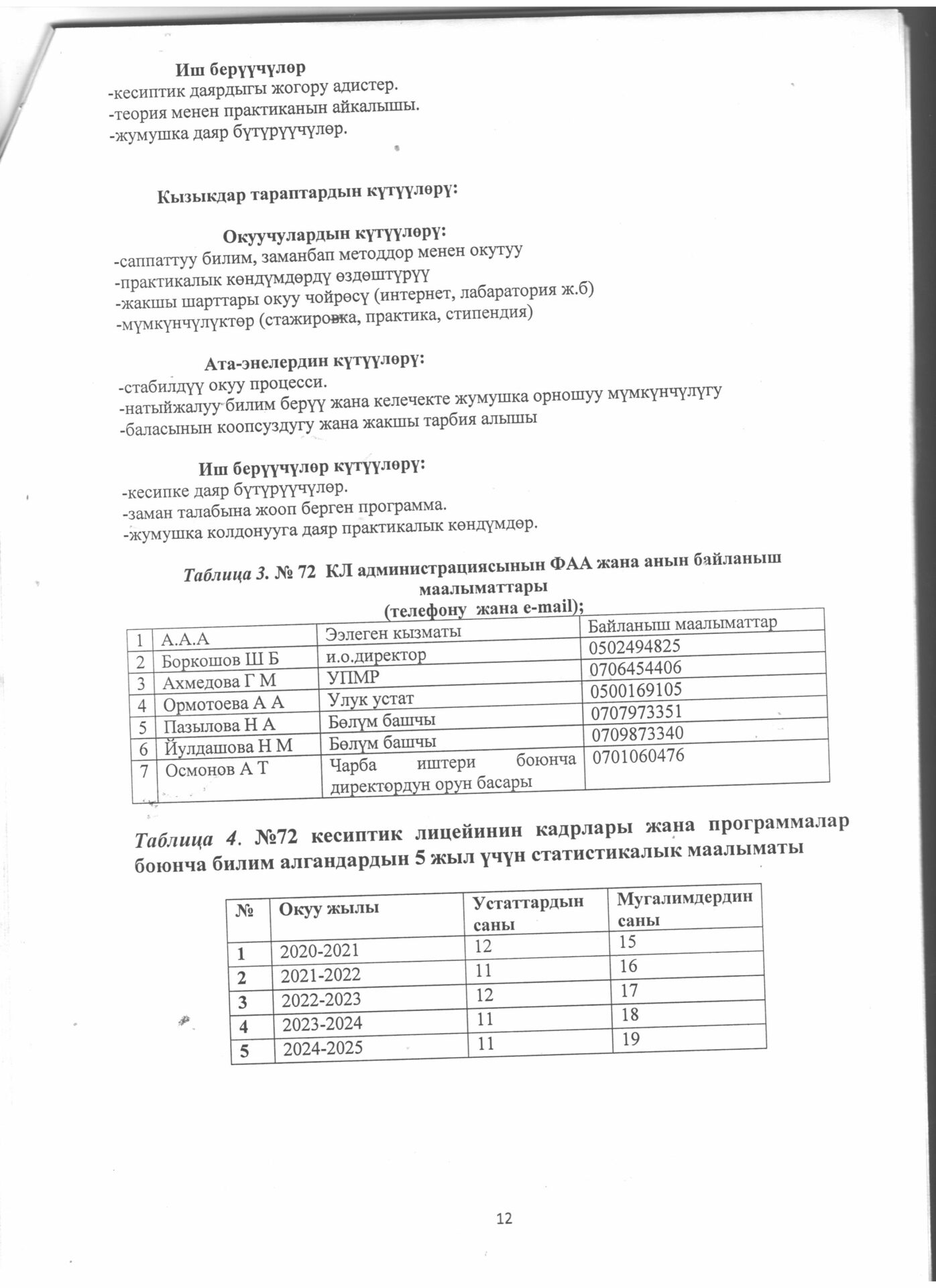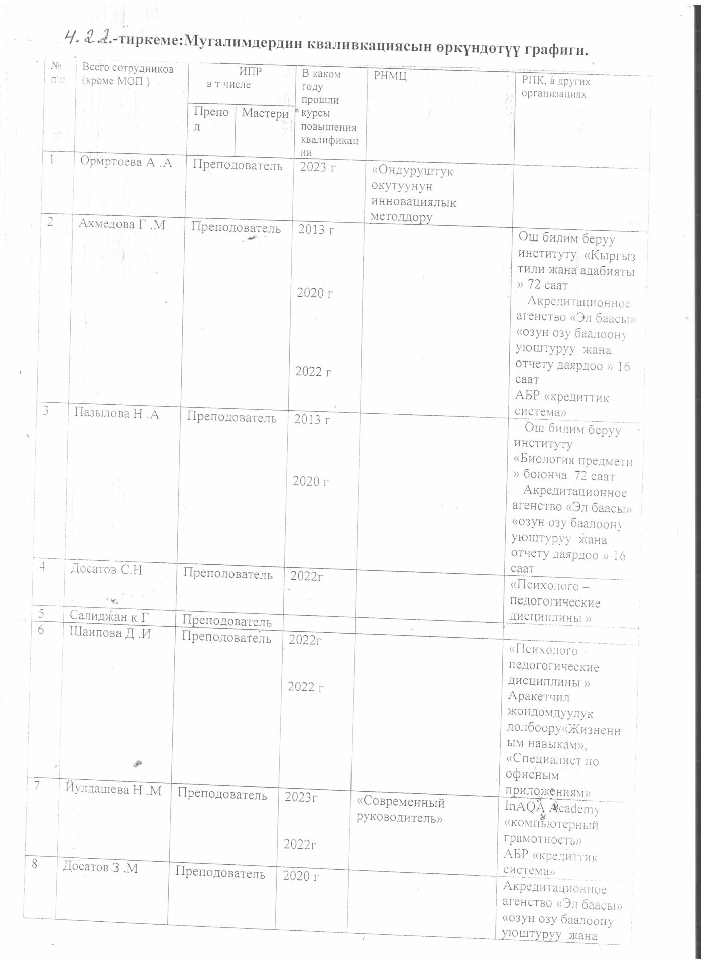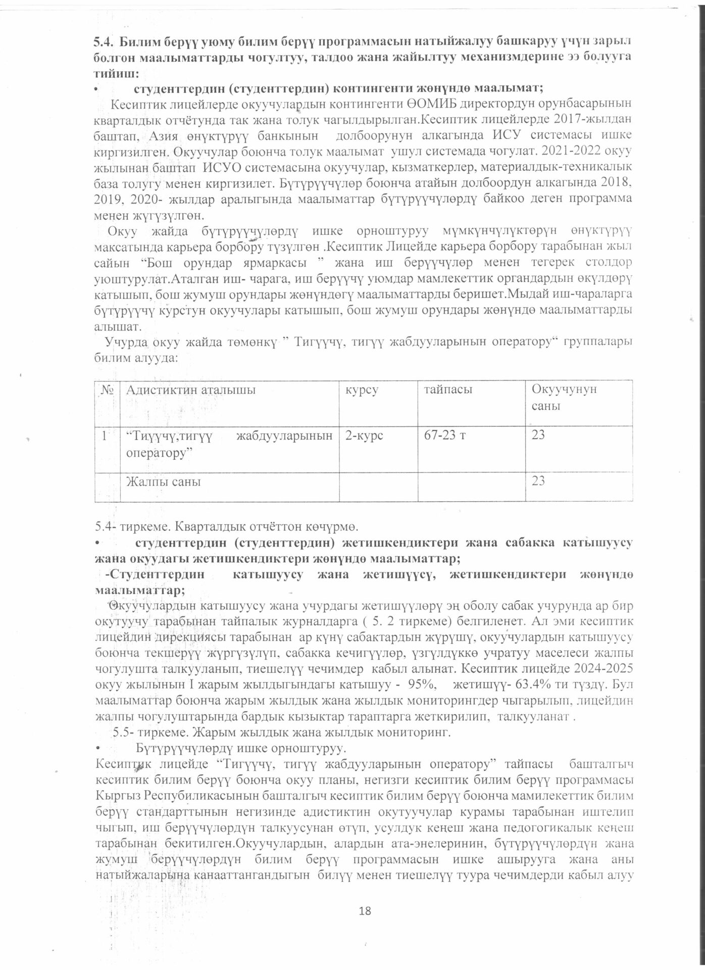 5.4.4.. тиркеме Бүтүрүүчүлөрдүн тизмеси