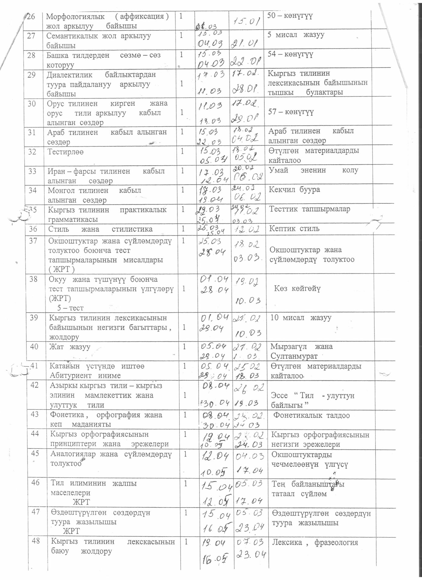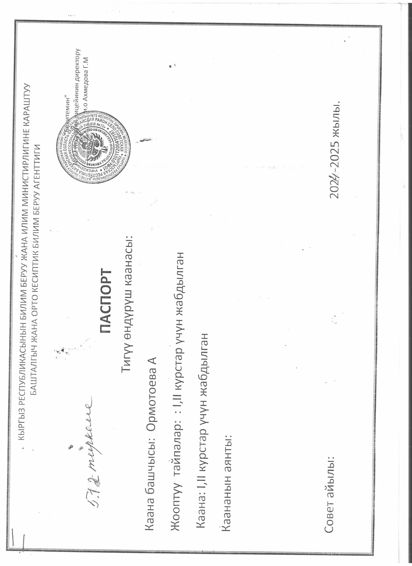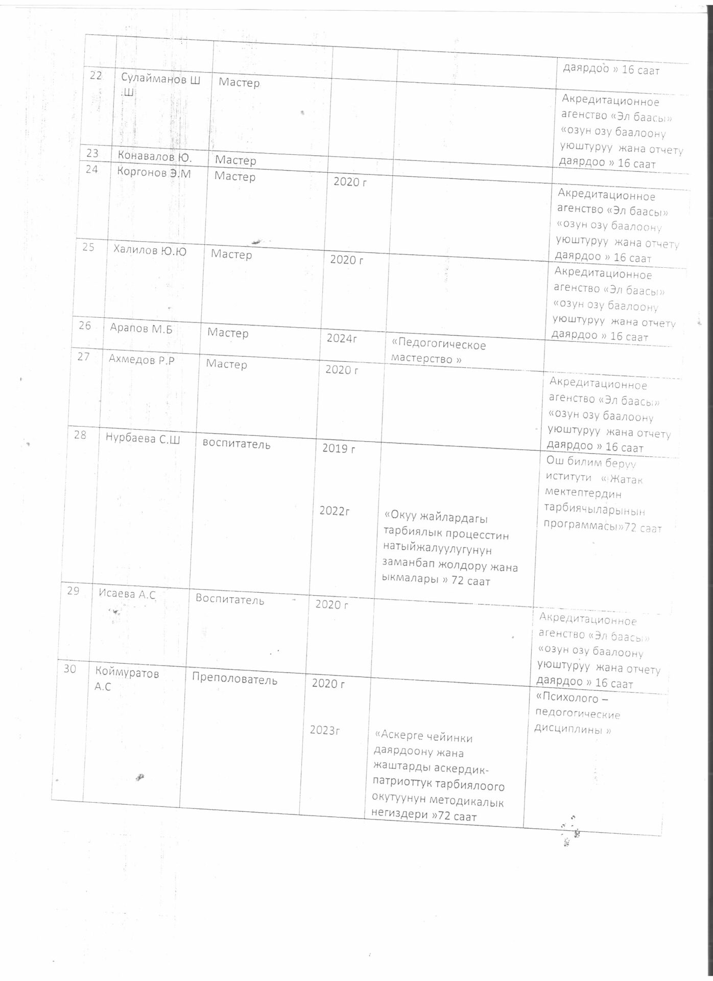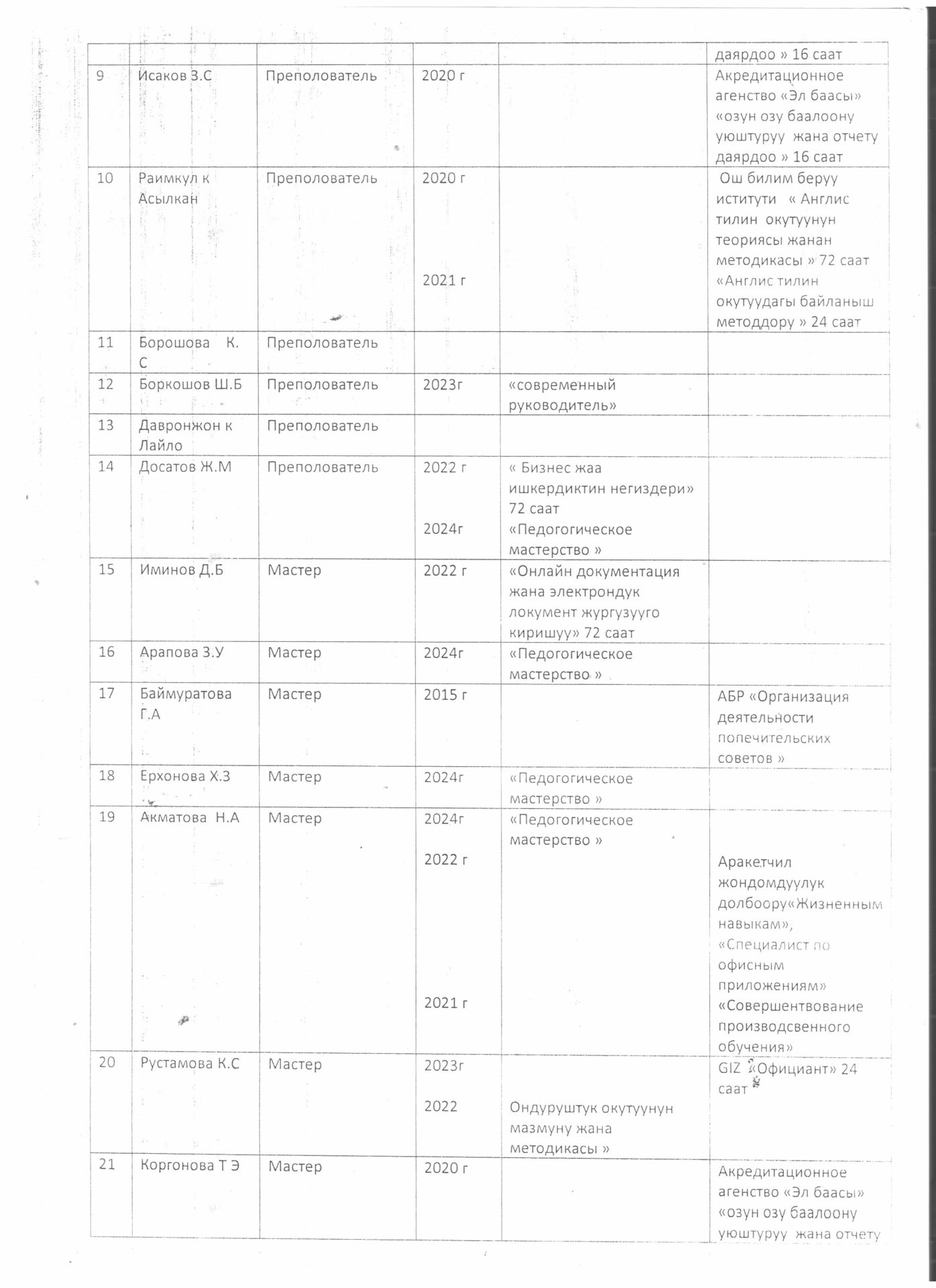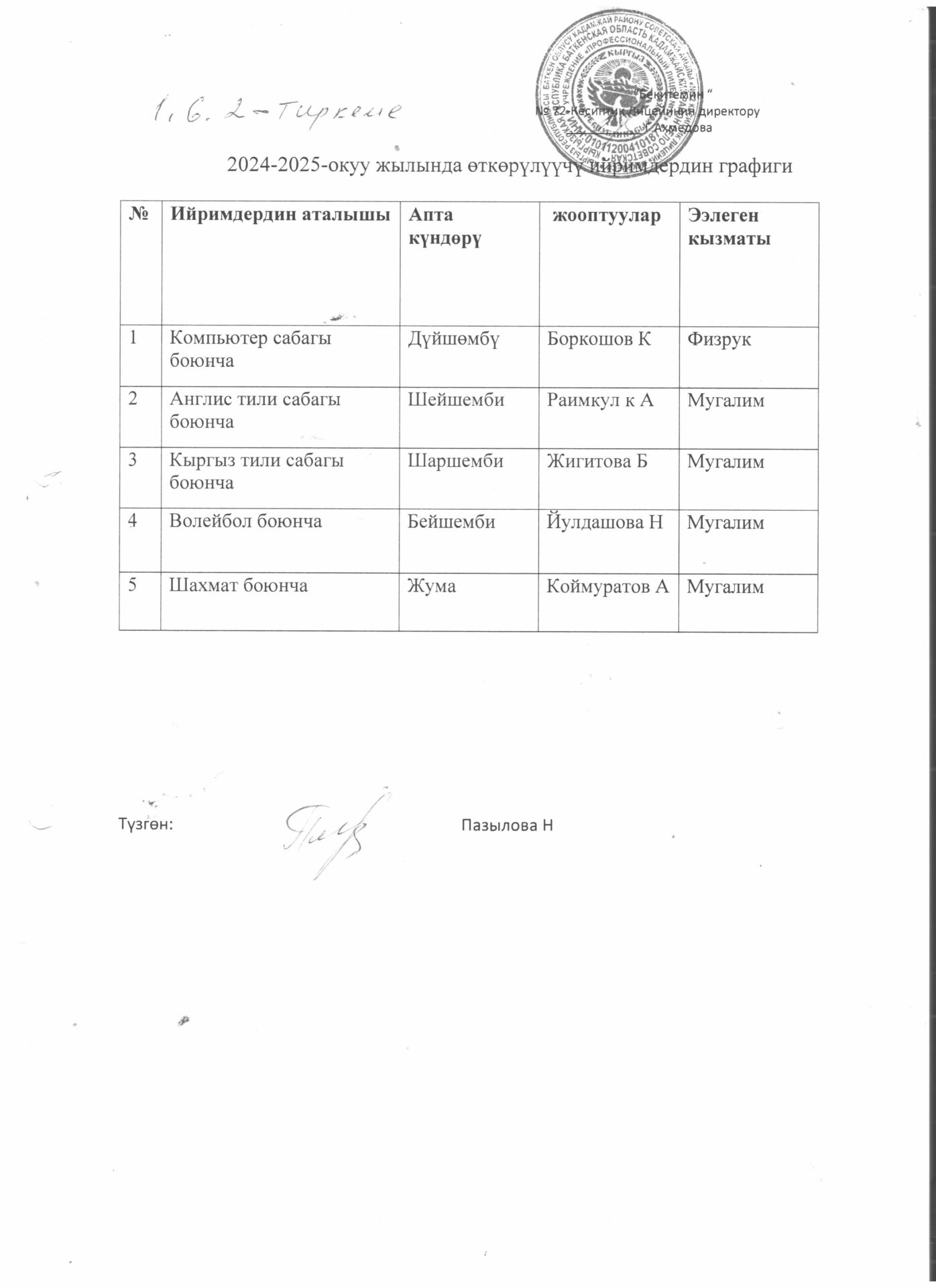 5.4.4.. тиркеме Бүтүрүүчүлөрдүн тизмеси