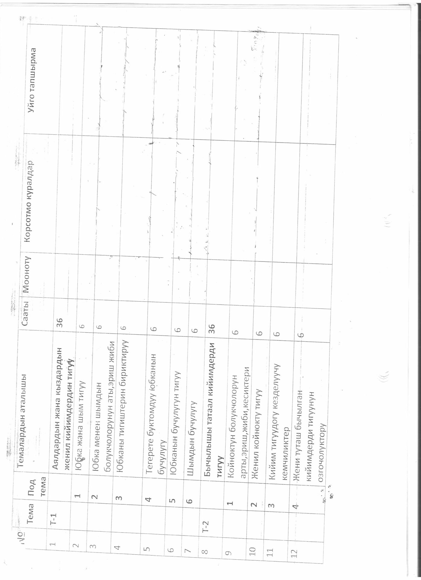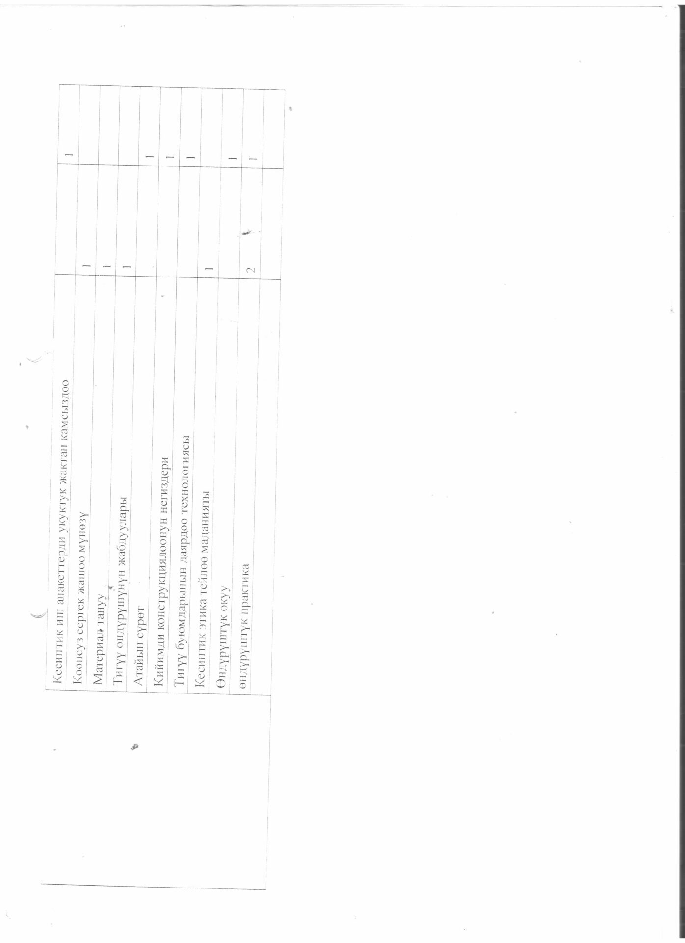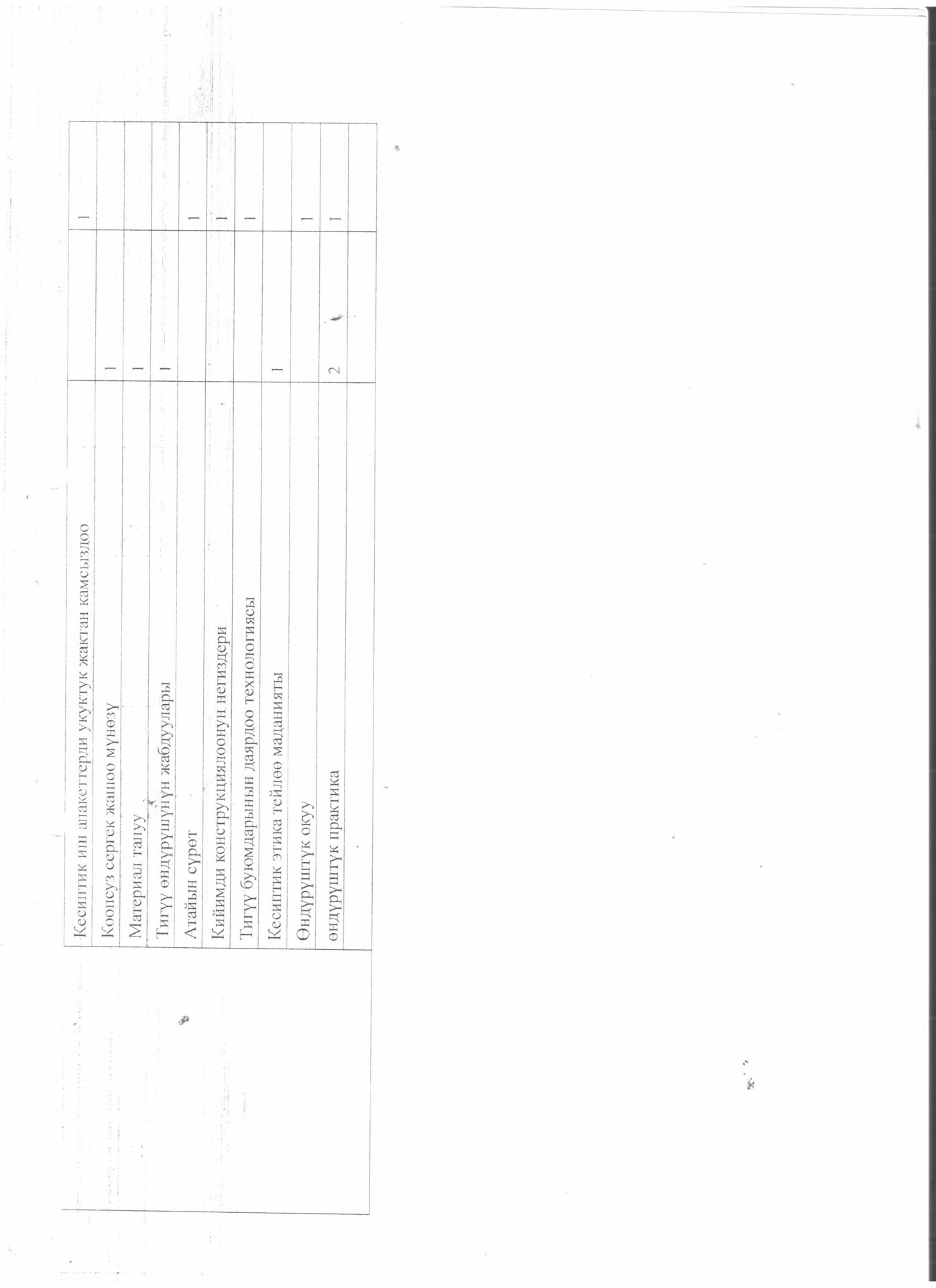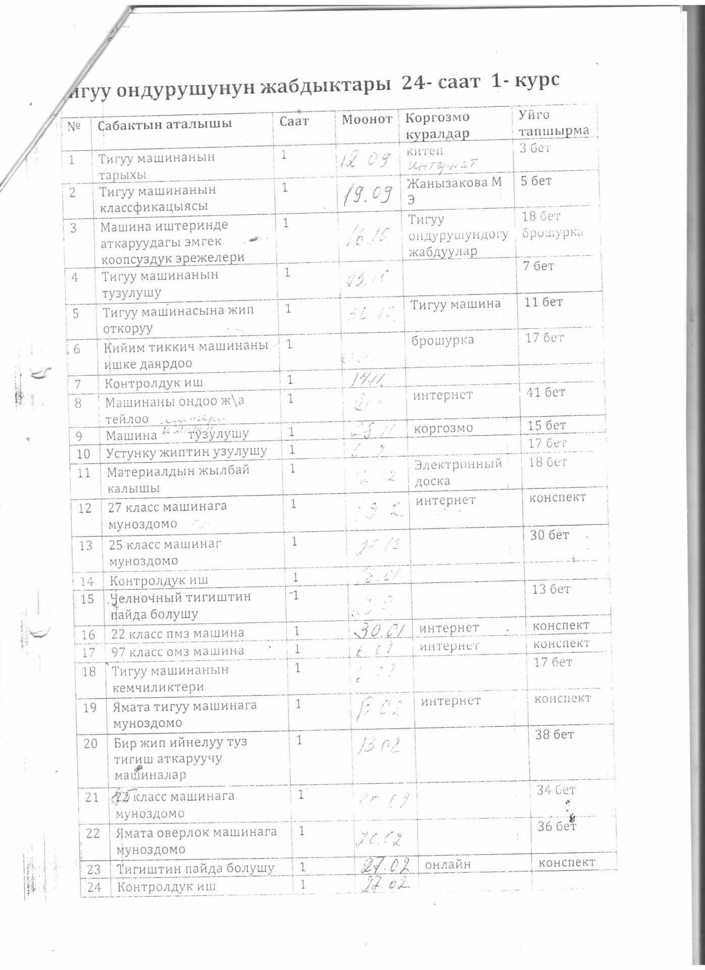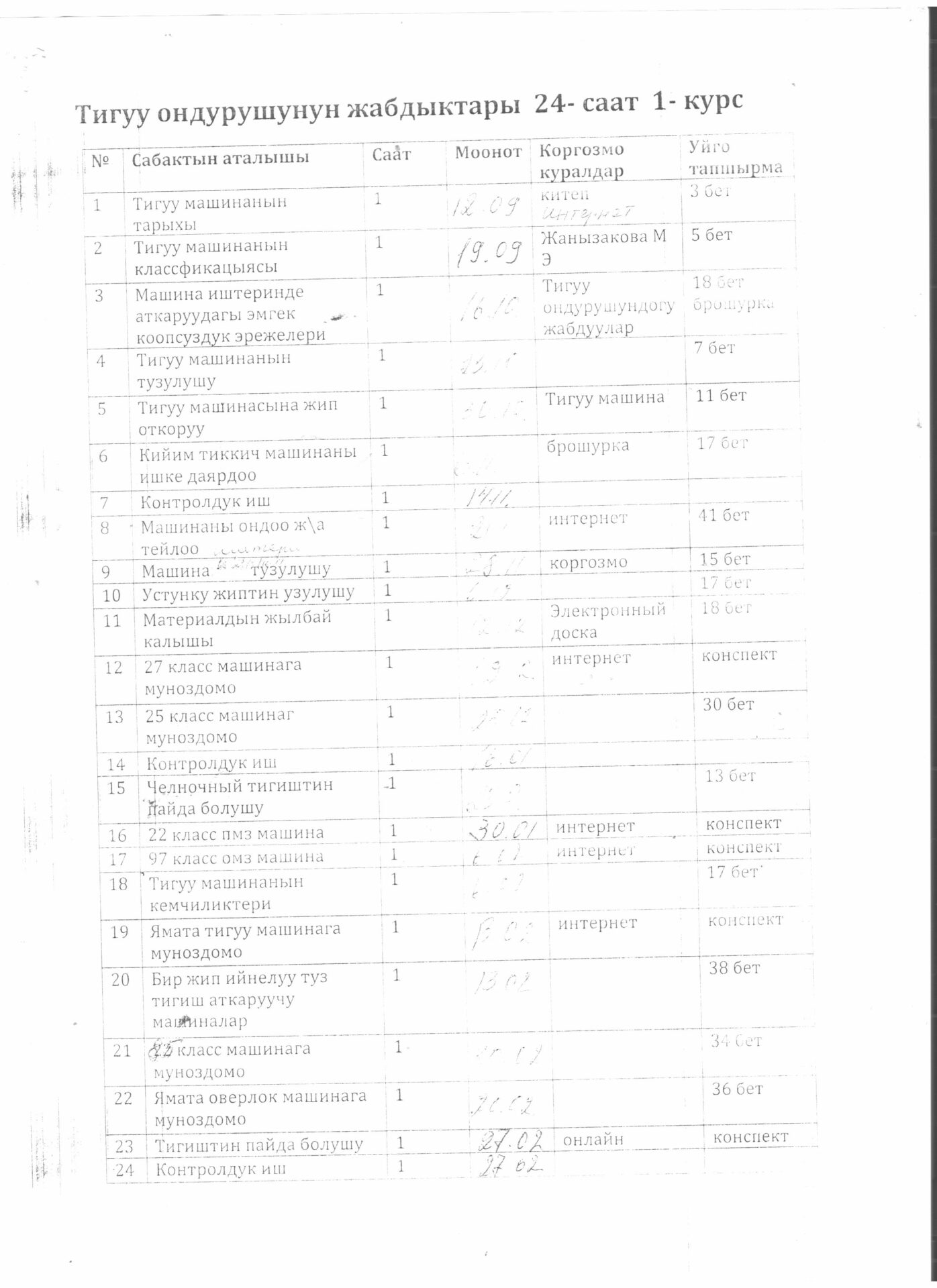 Тигүүчү,тигүү жабдууларынын оператору кесиби боюнча өзүн-өзү балоо отчёту