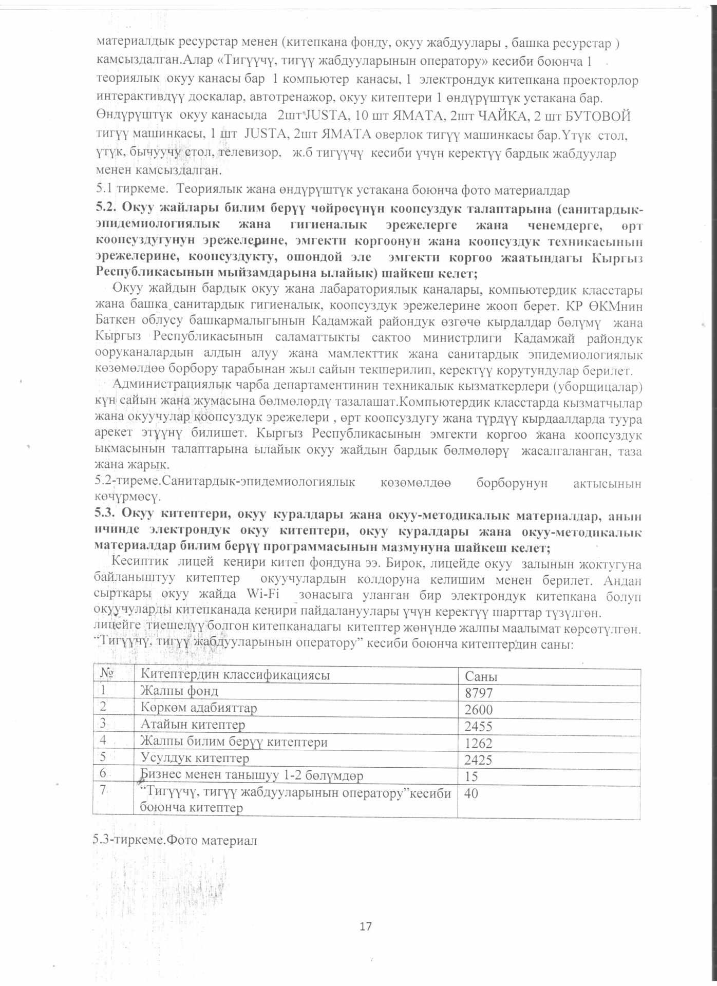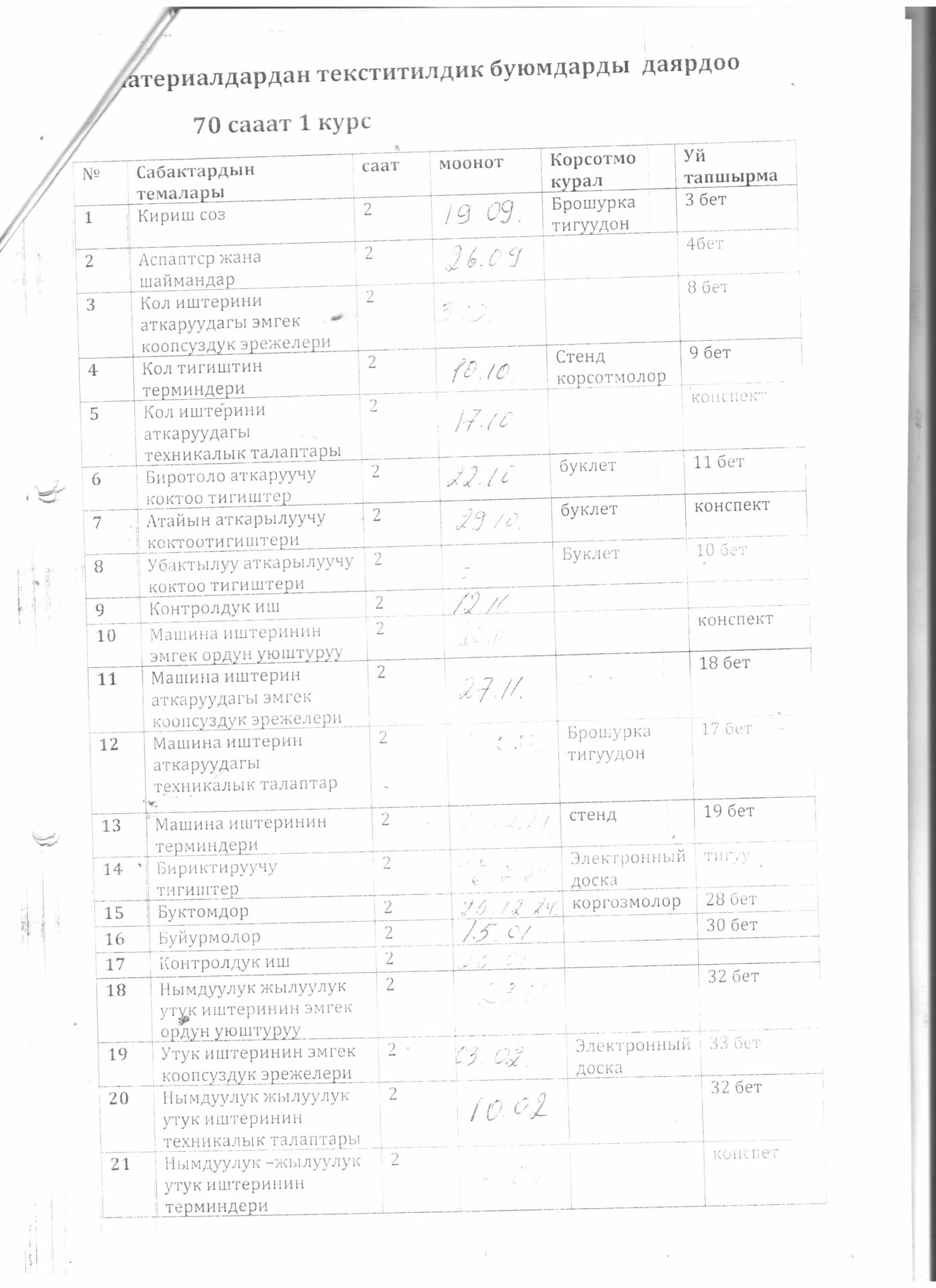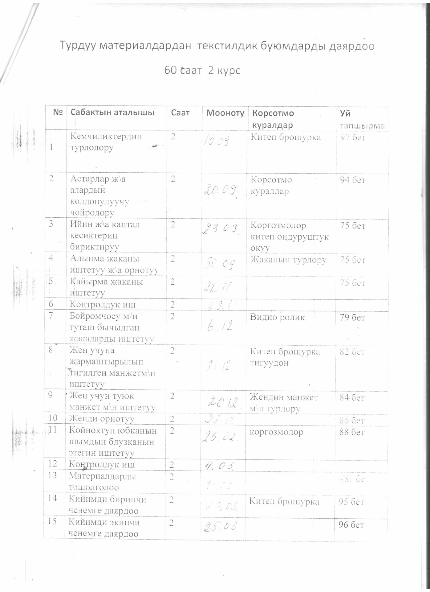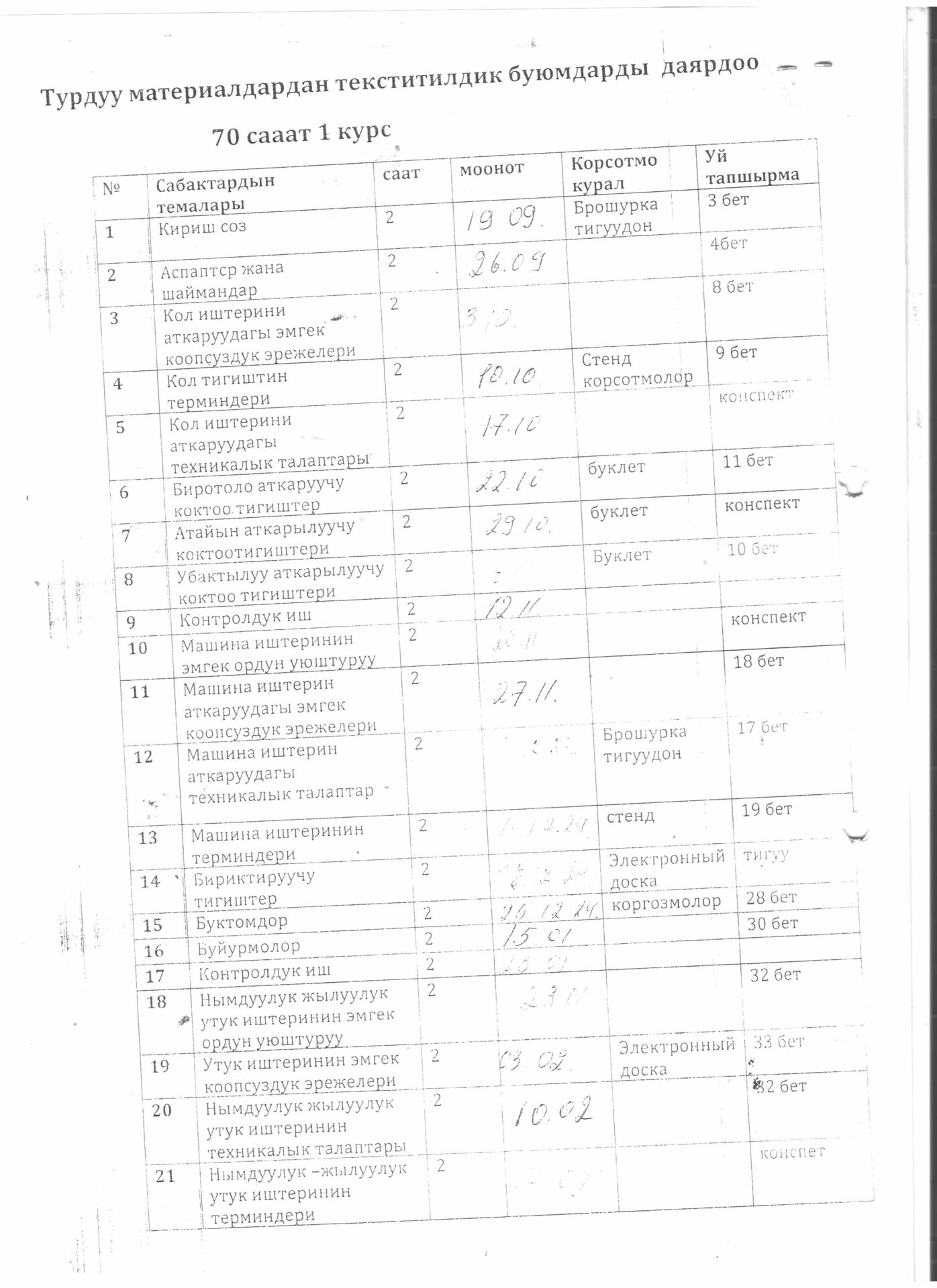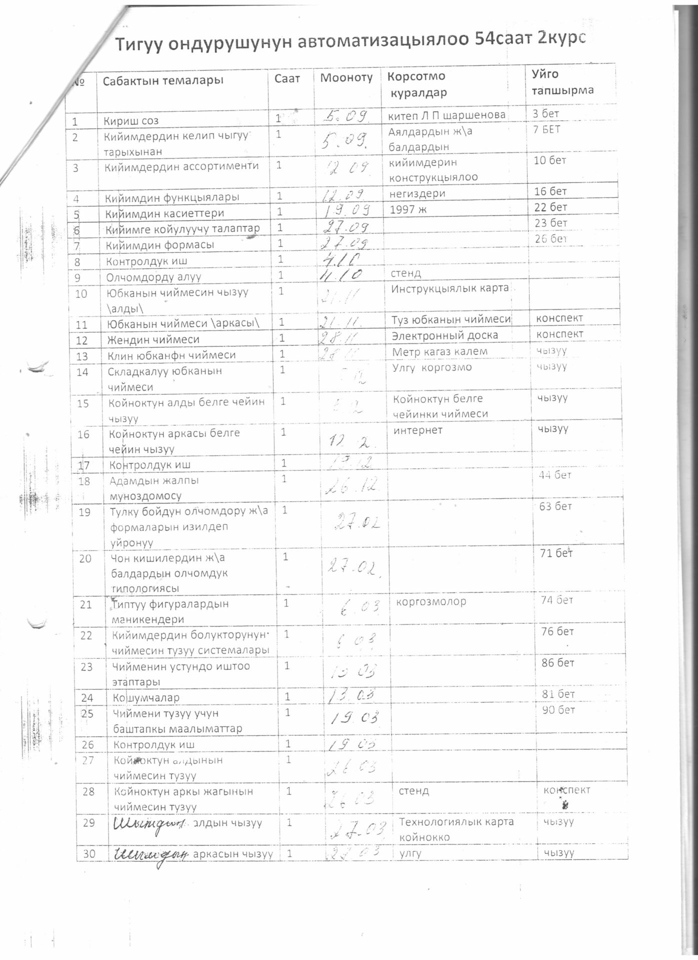 Тигүүчү,тигүү жабдууларынын оператору кесиби боюнча өзүн-өзү балоо отчёту