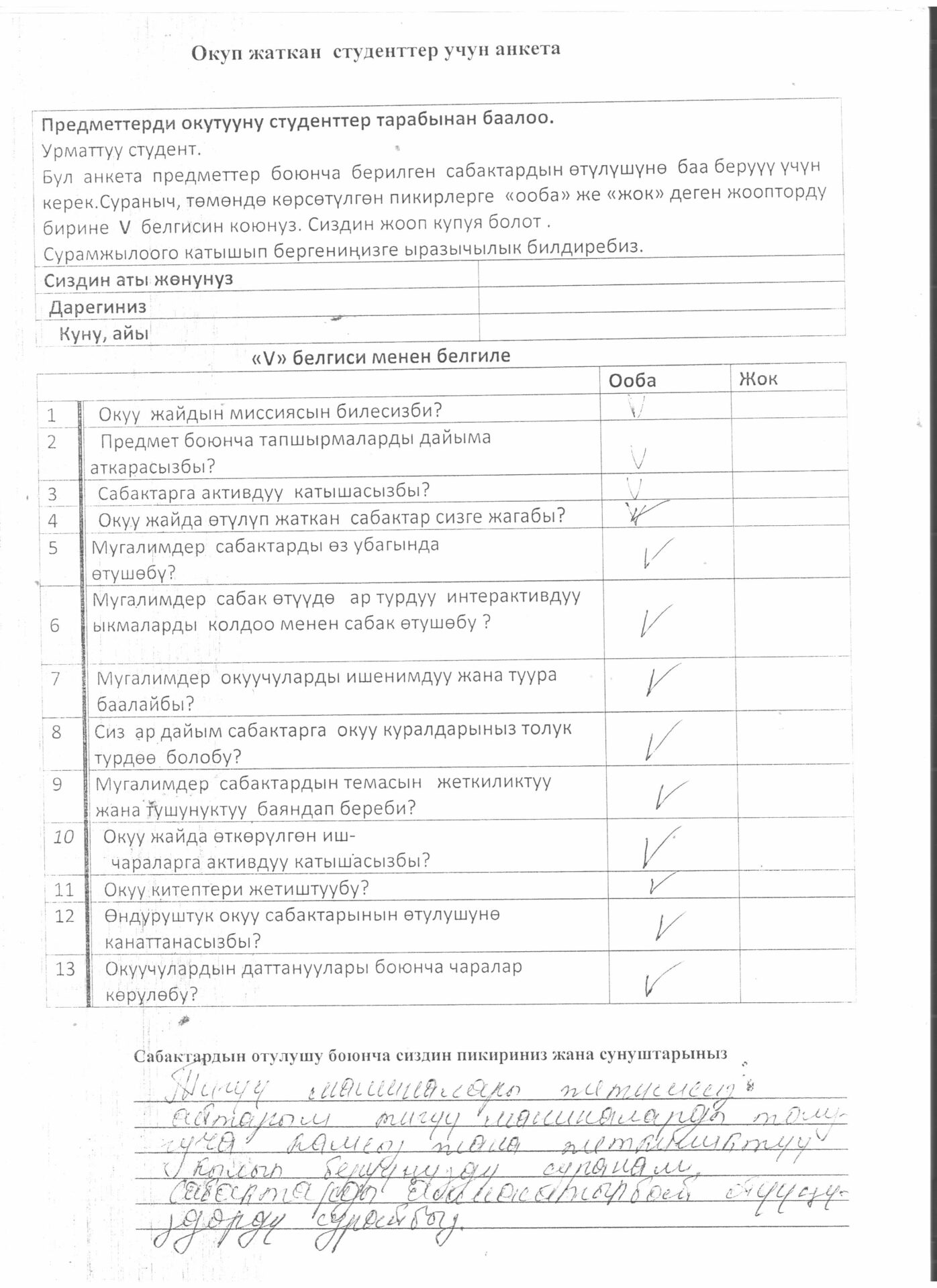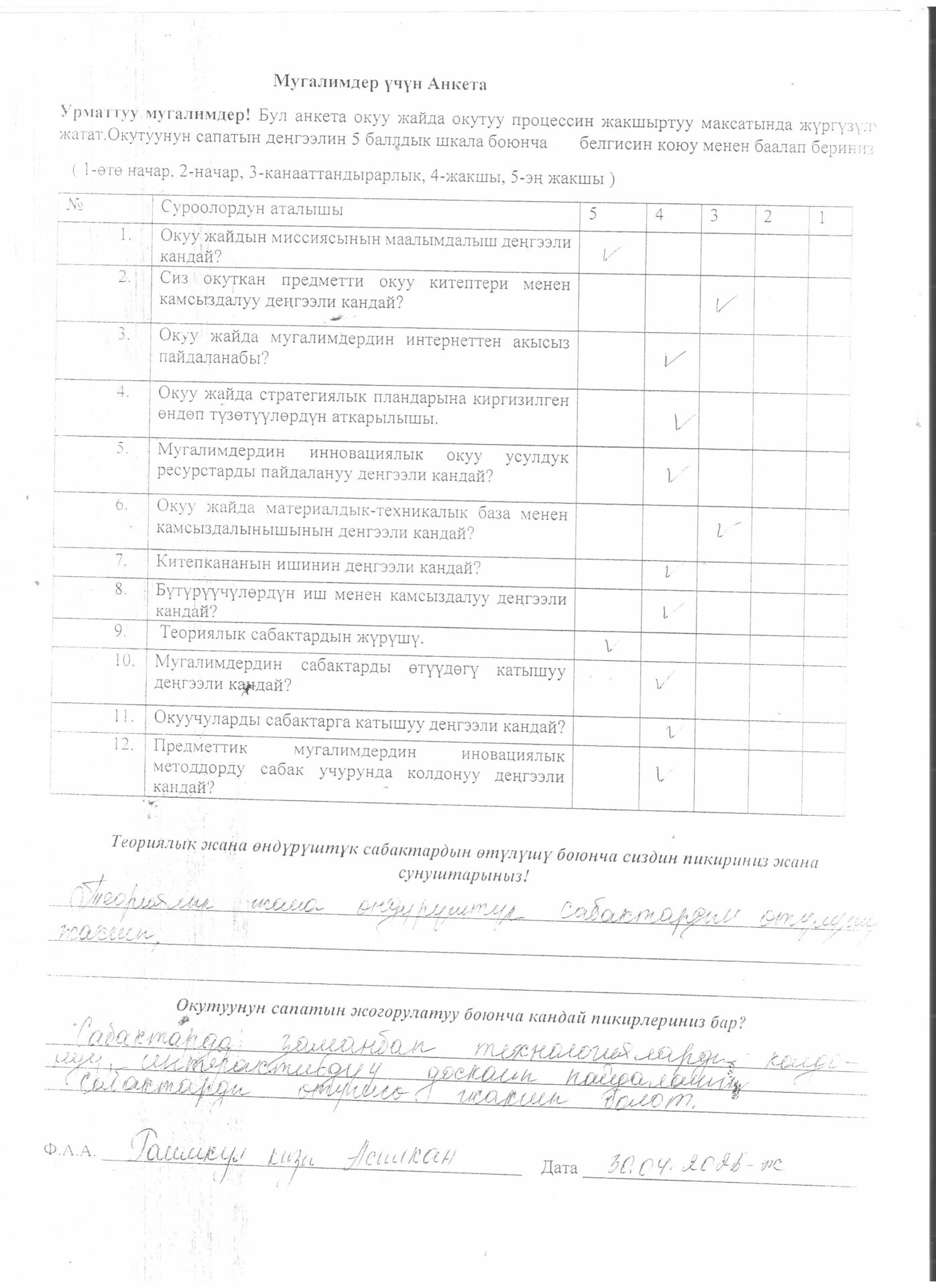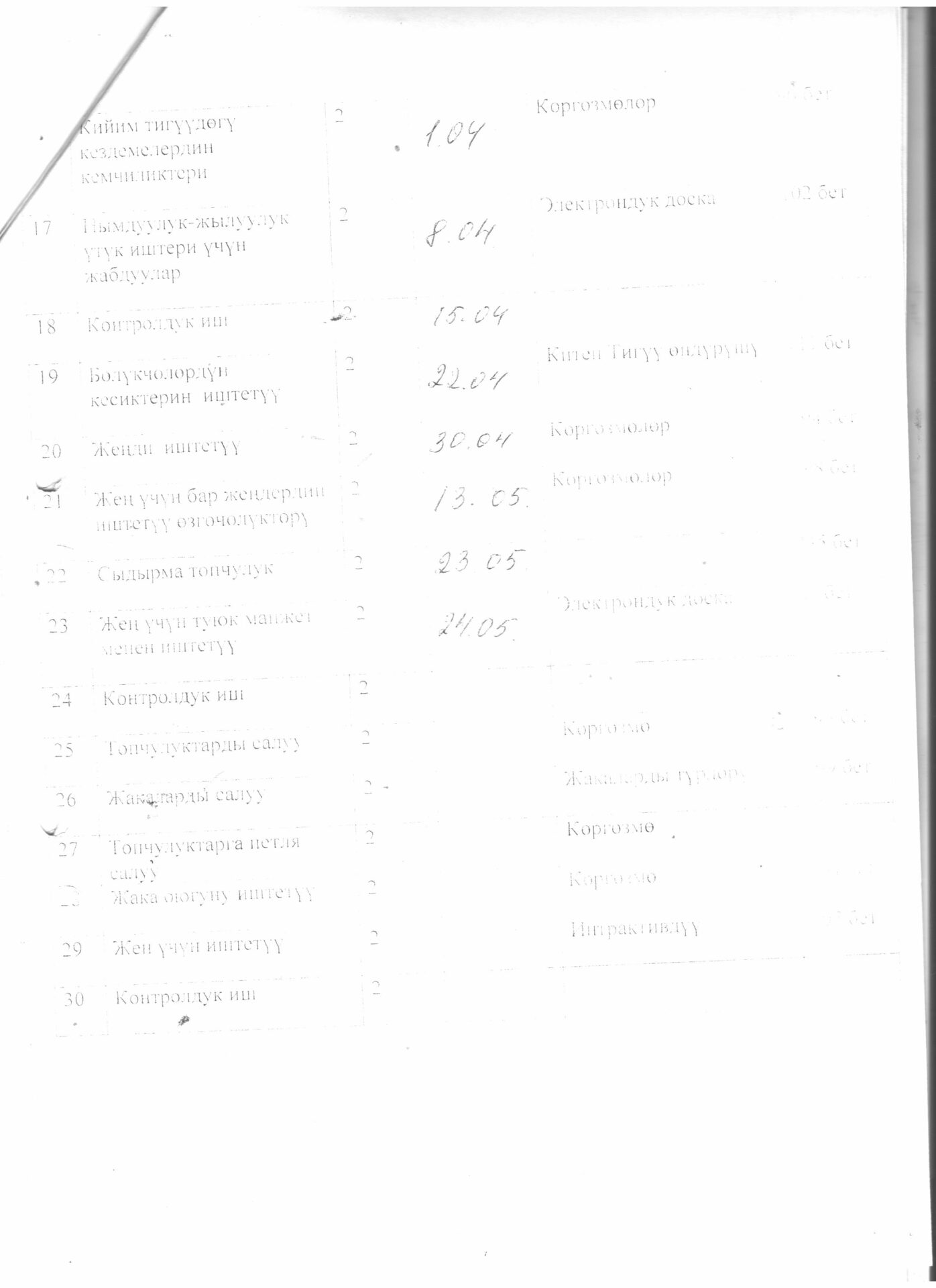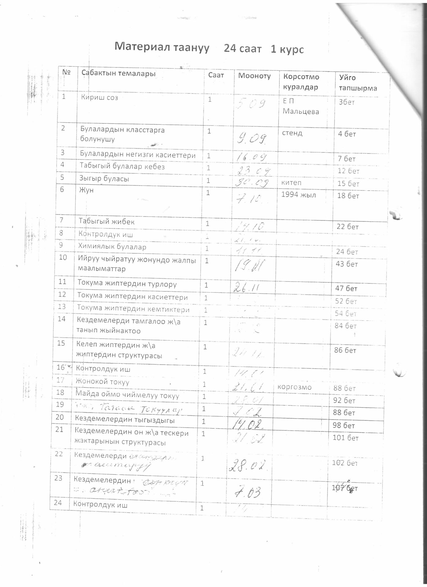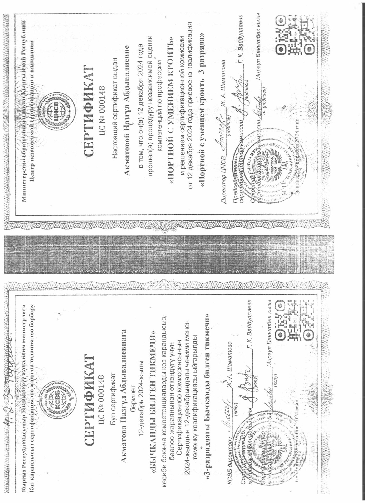 Тигүүчү,тигүү жабдууларынын оператору кесиби боюнча өзүн-өзү балоо отчёту