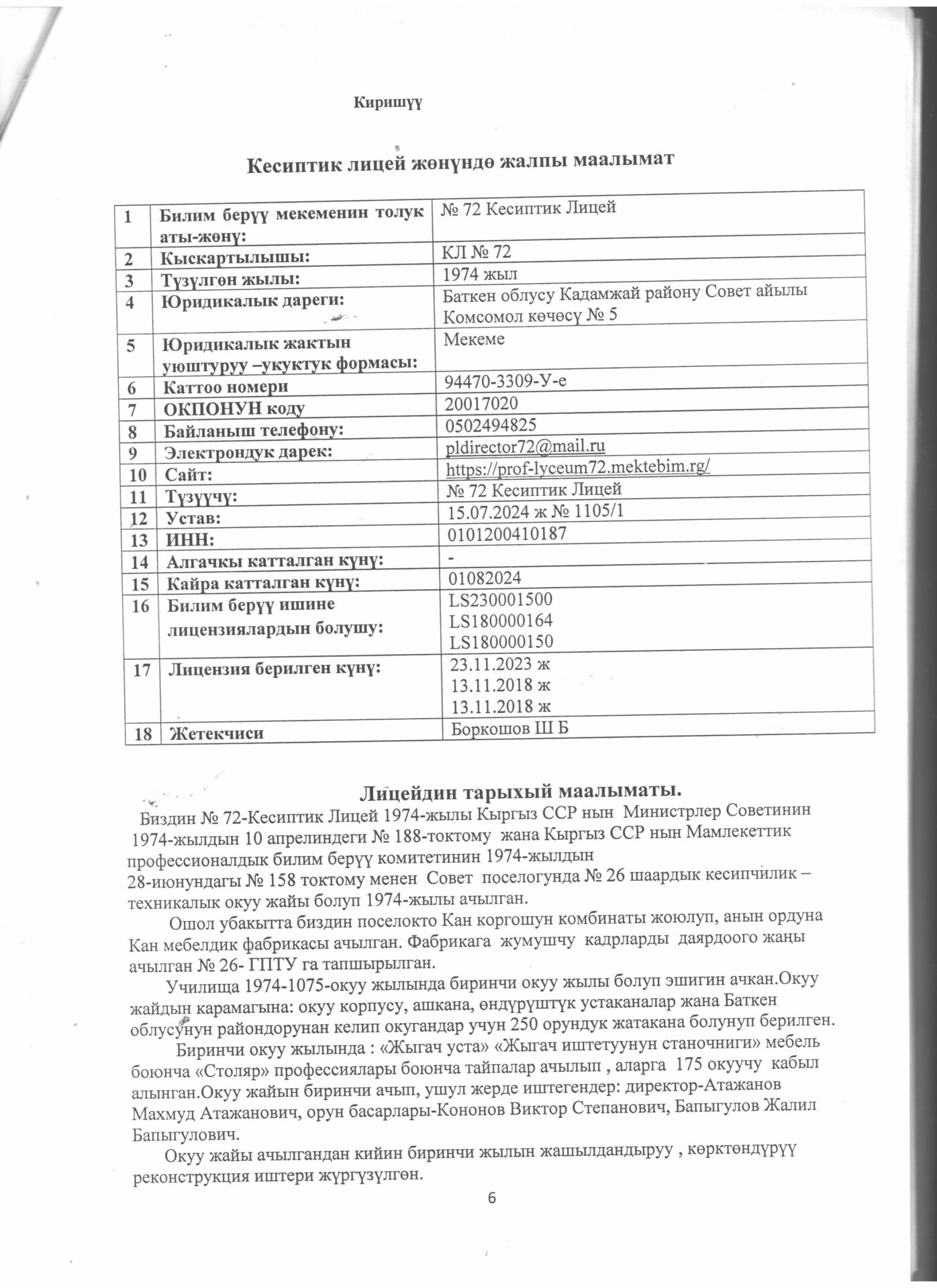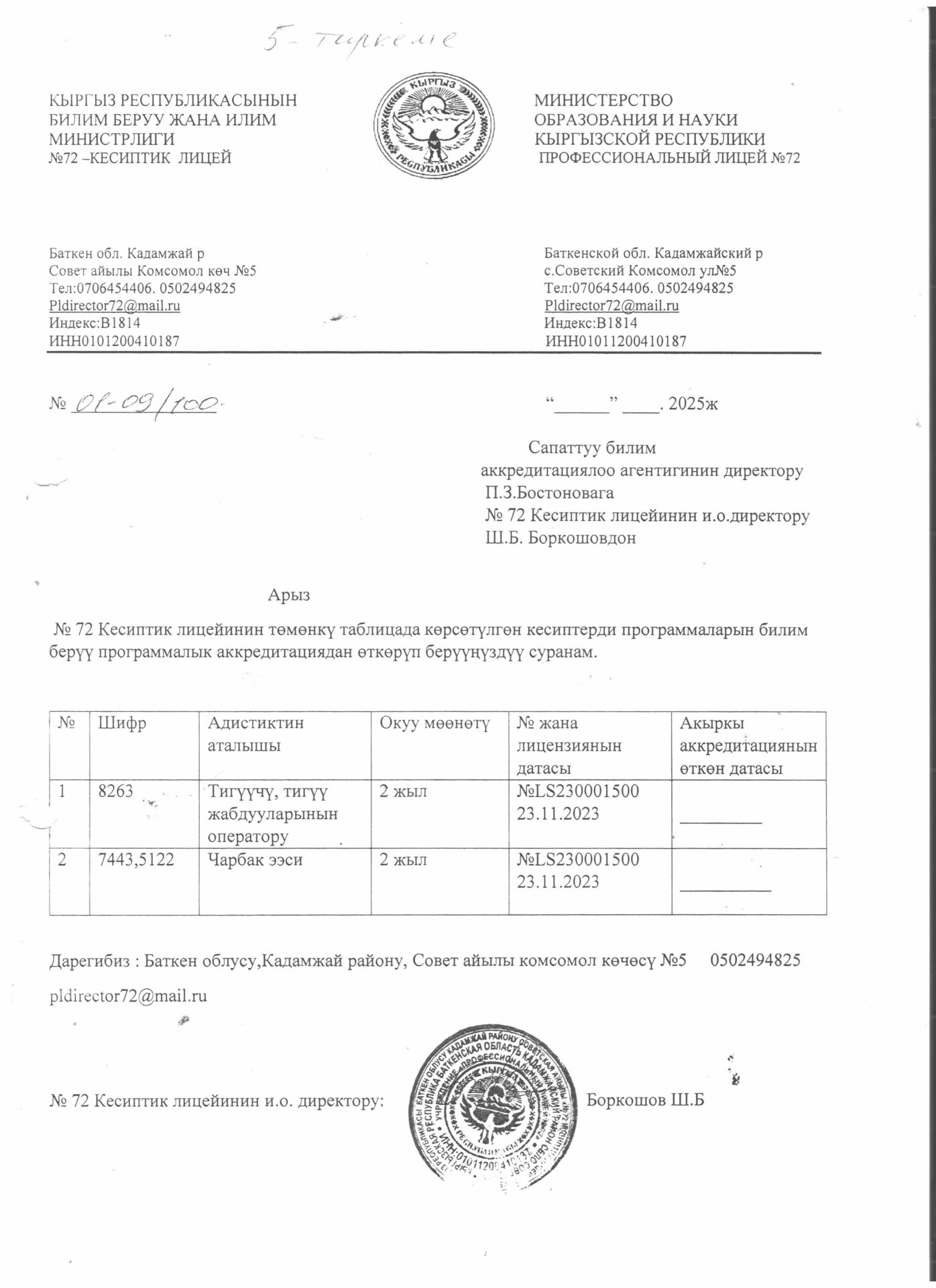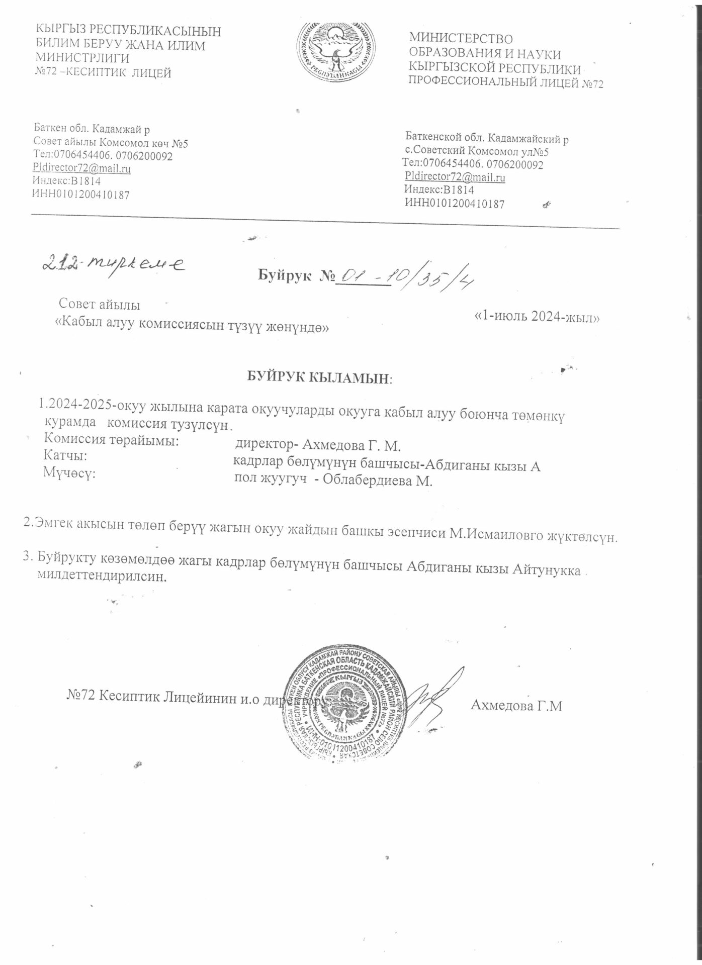 Лицейге кабыл алуу жөнүндө