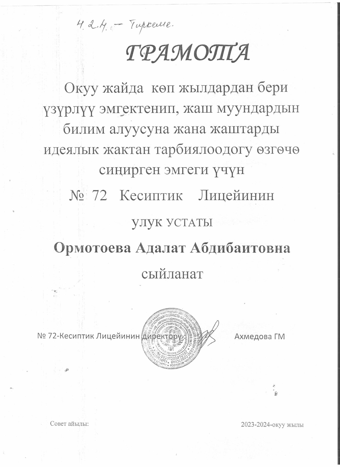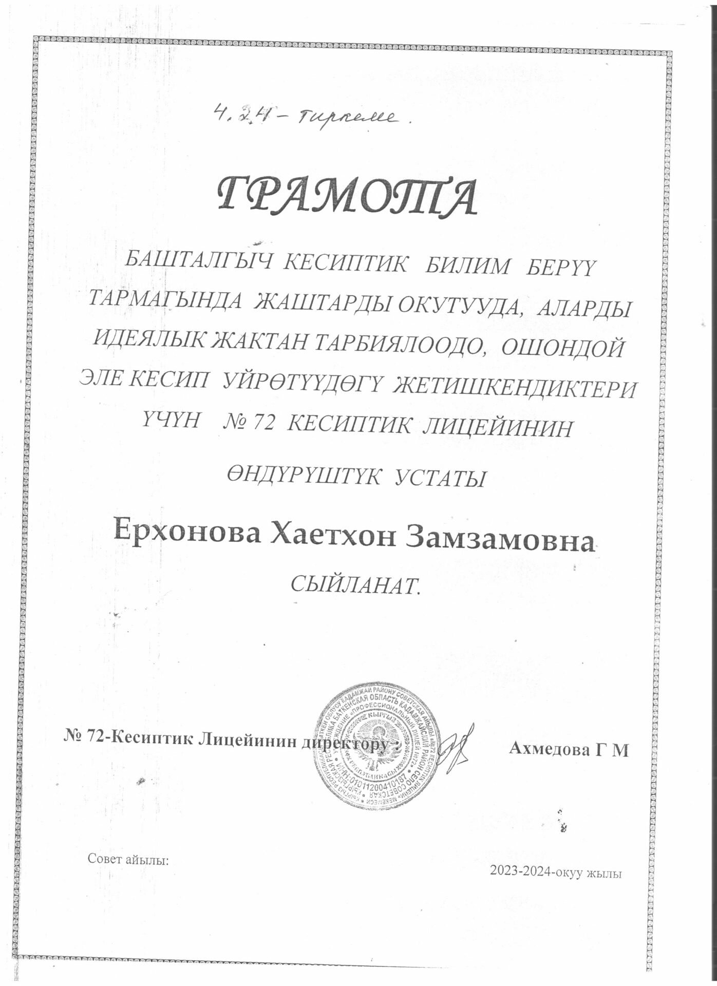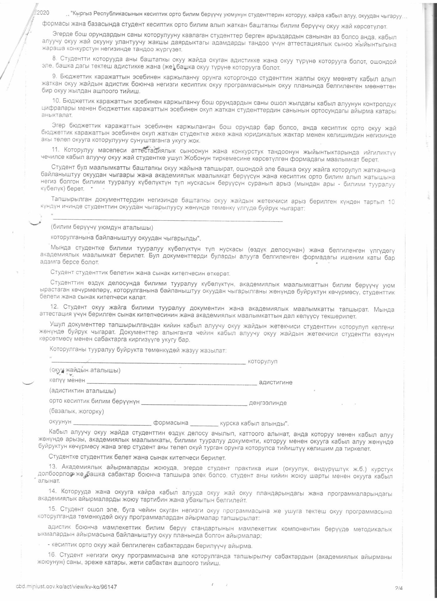 Лицейге кабыл алуу жөнүндө