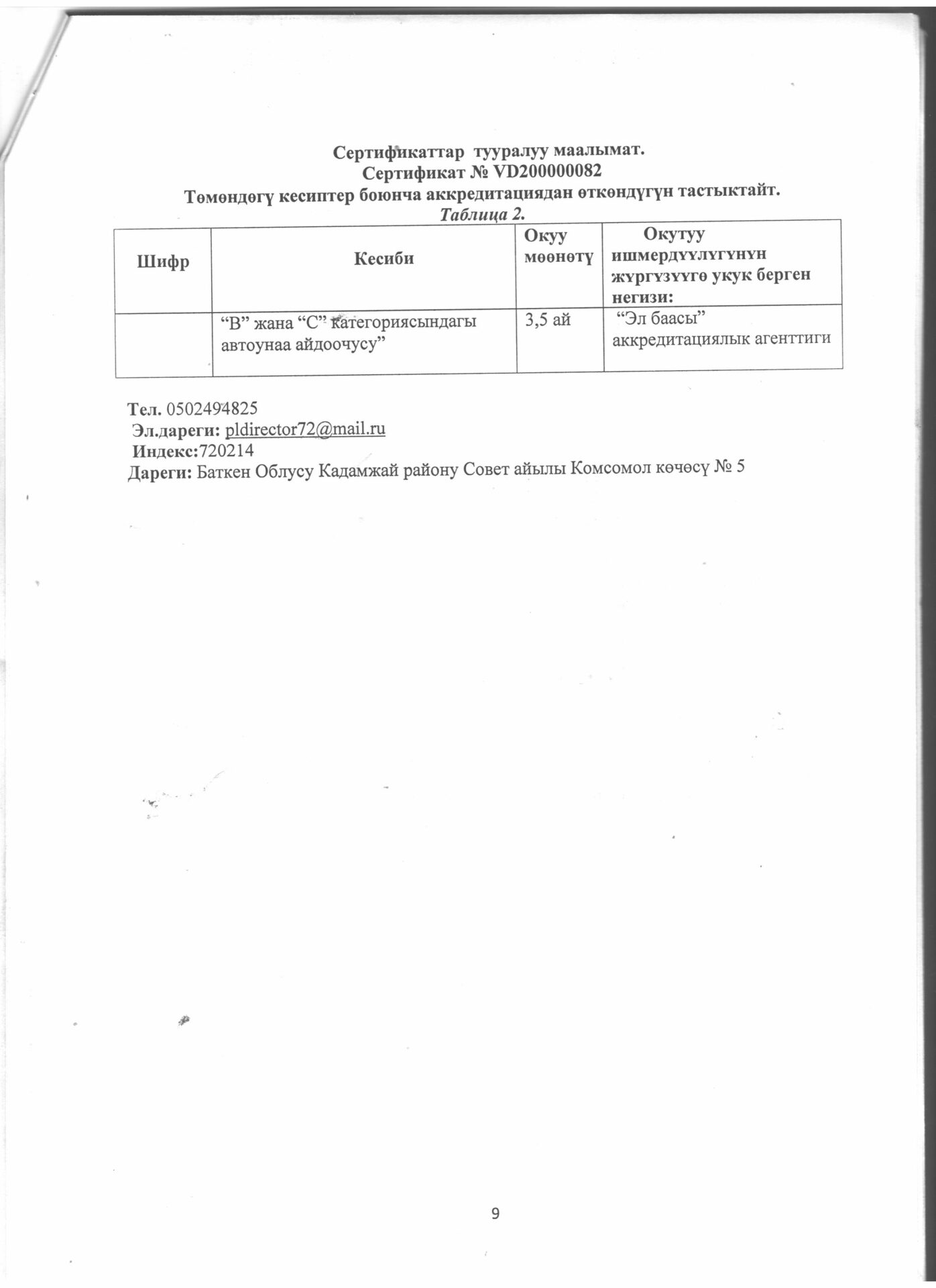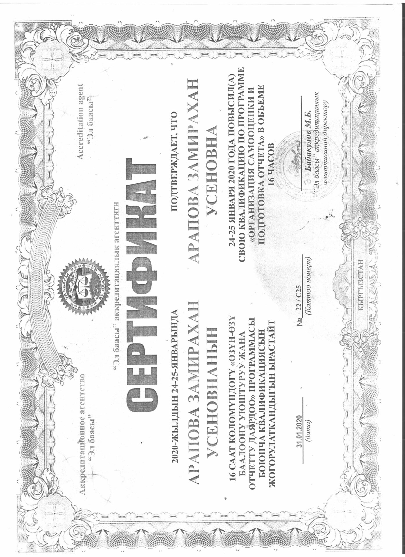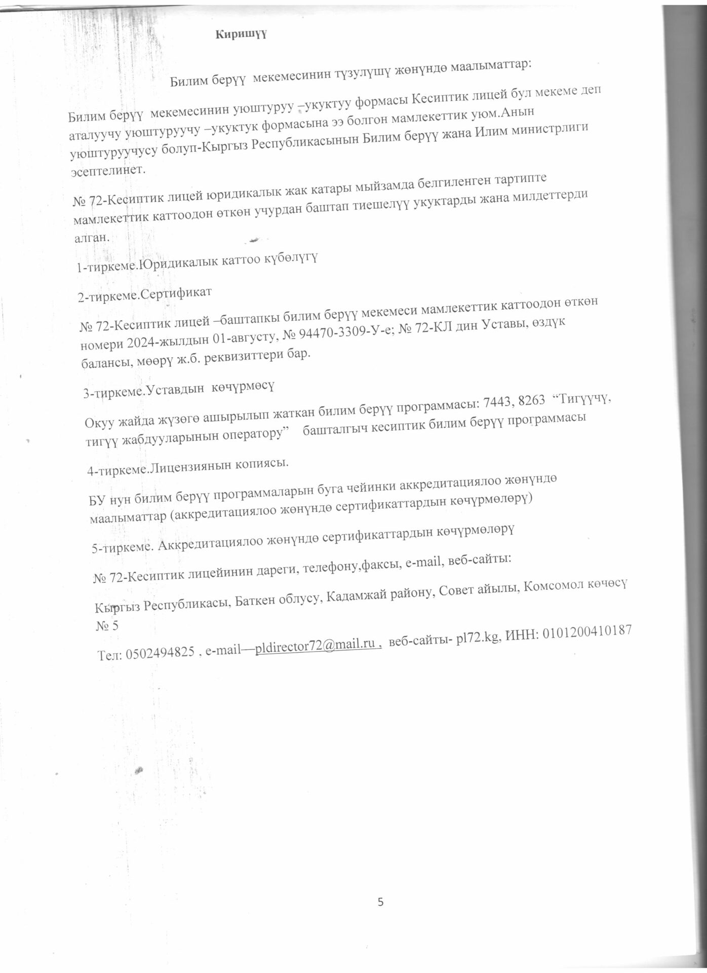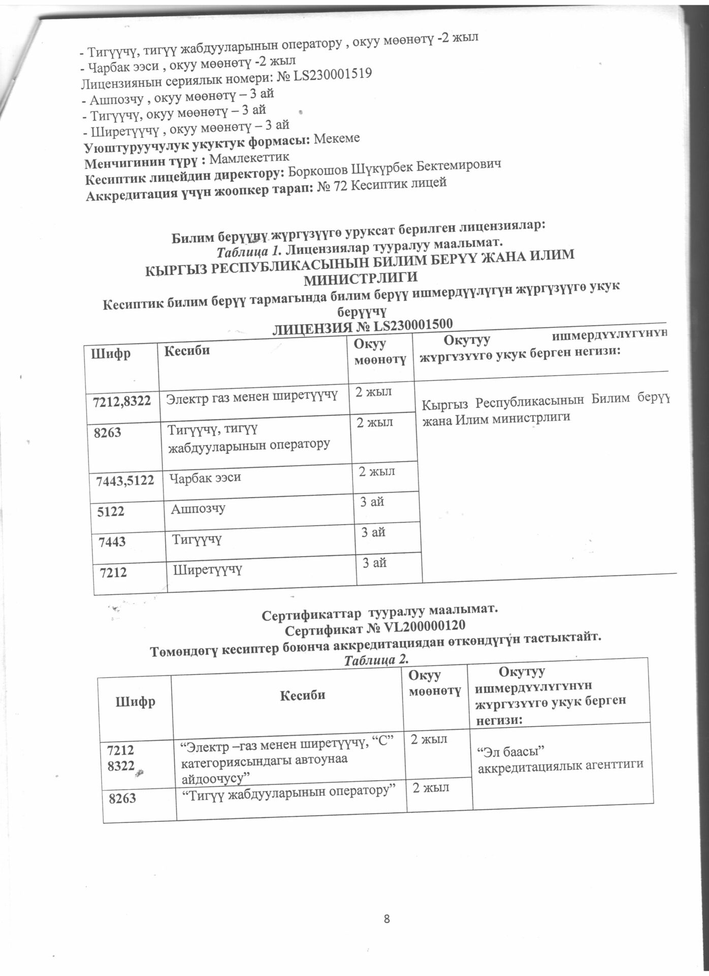1 тиркеме Юридикалык күбөлүгү