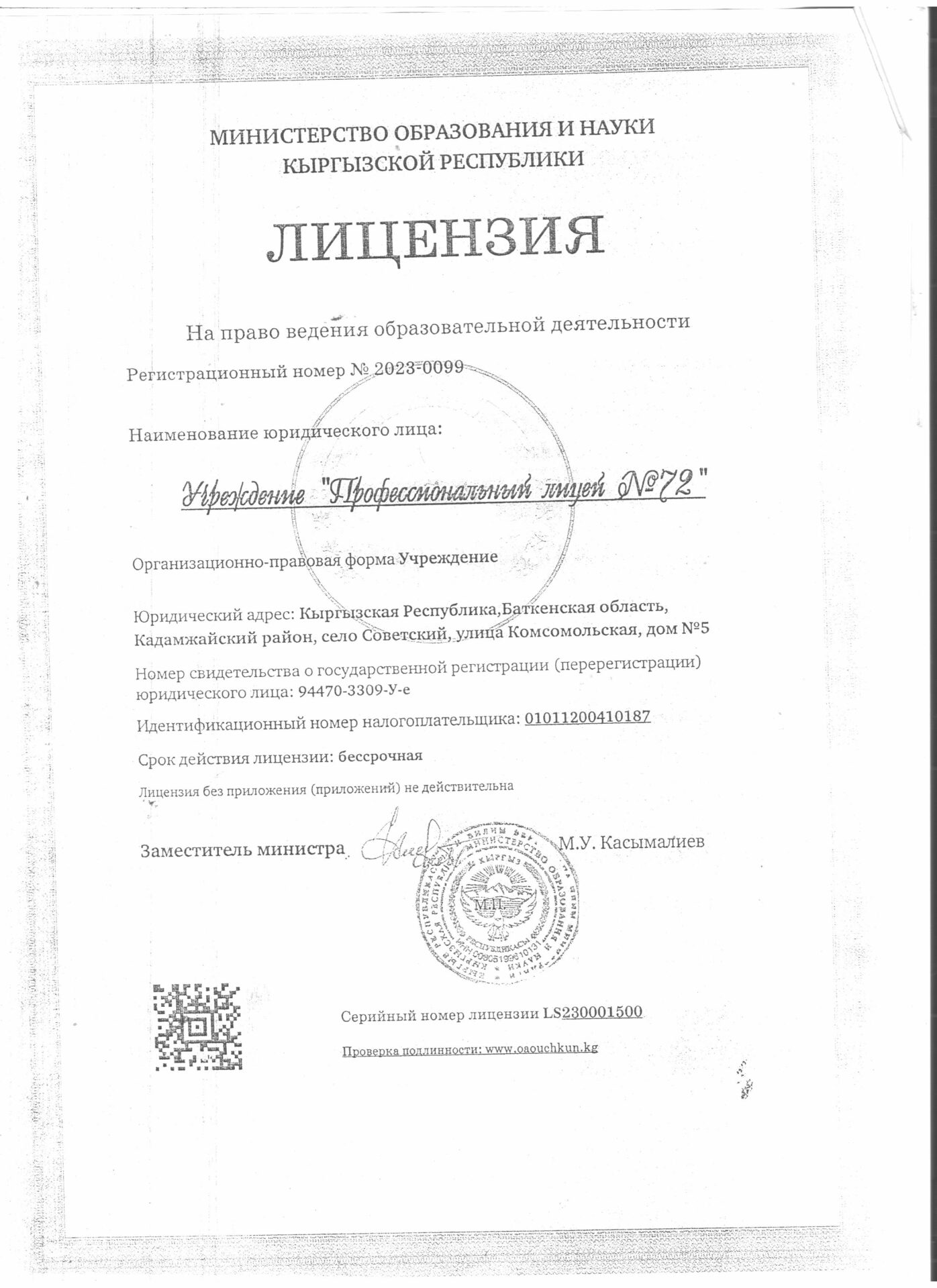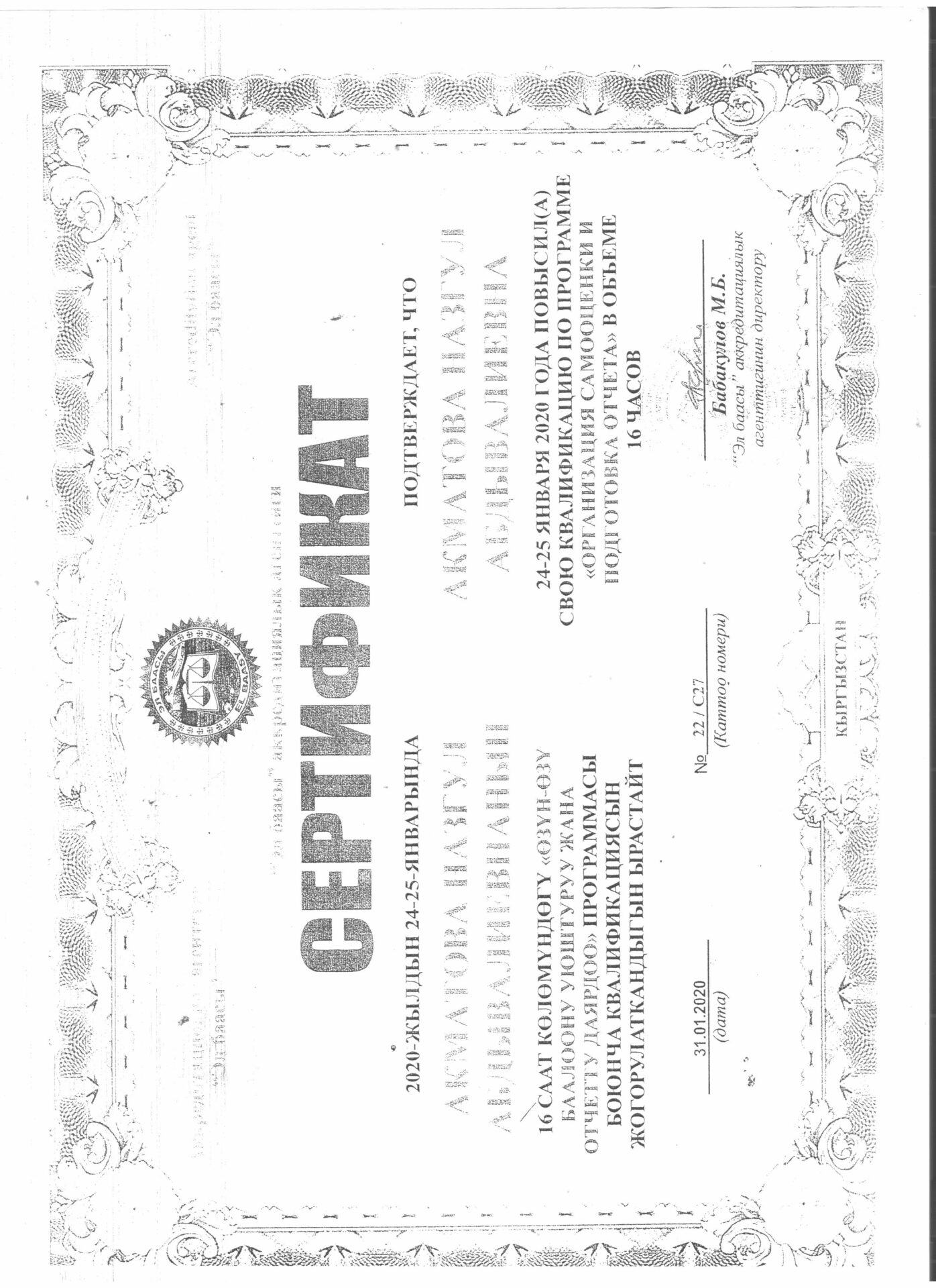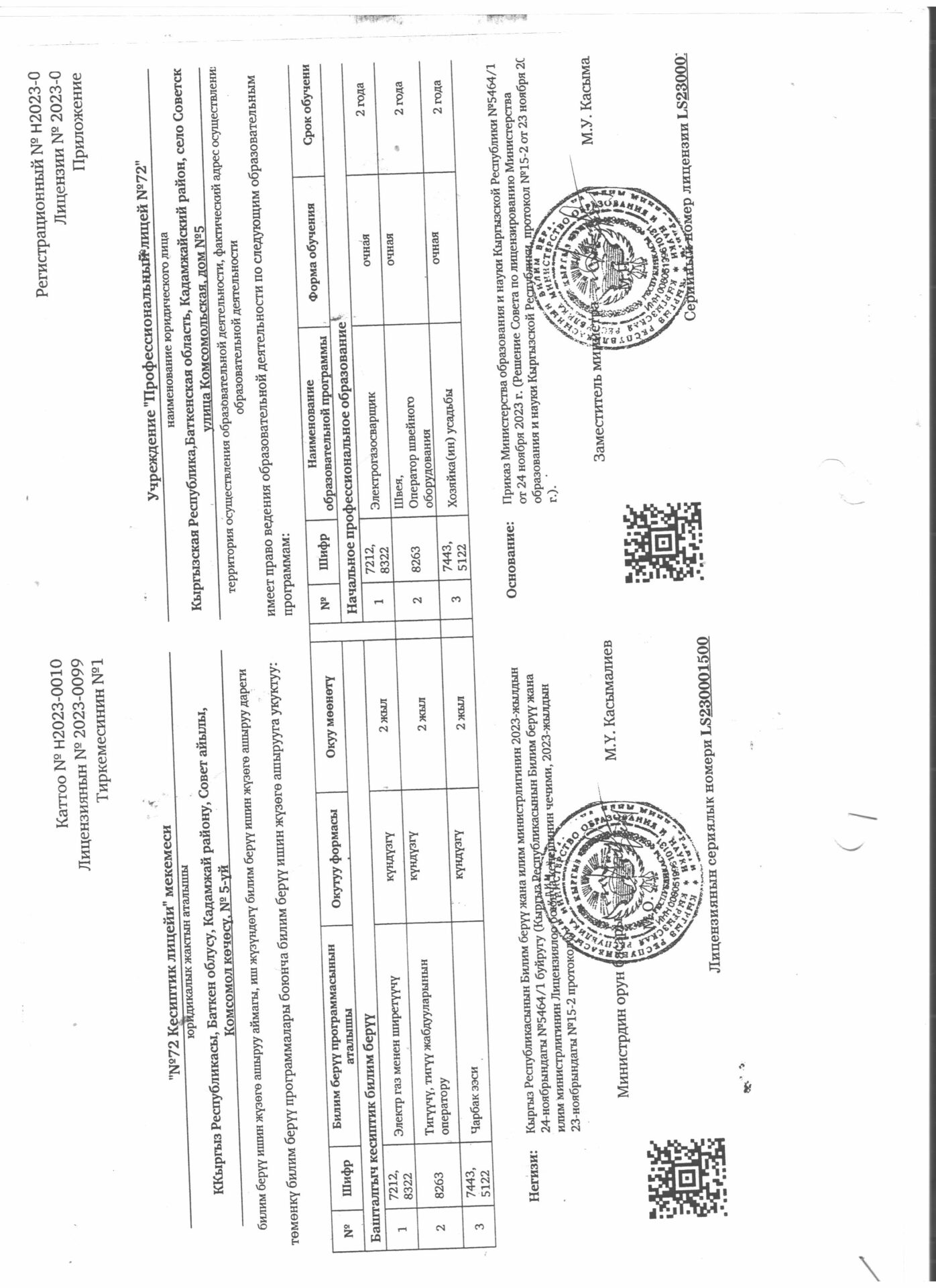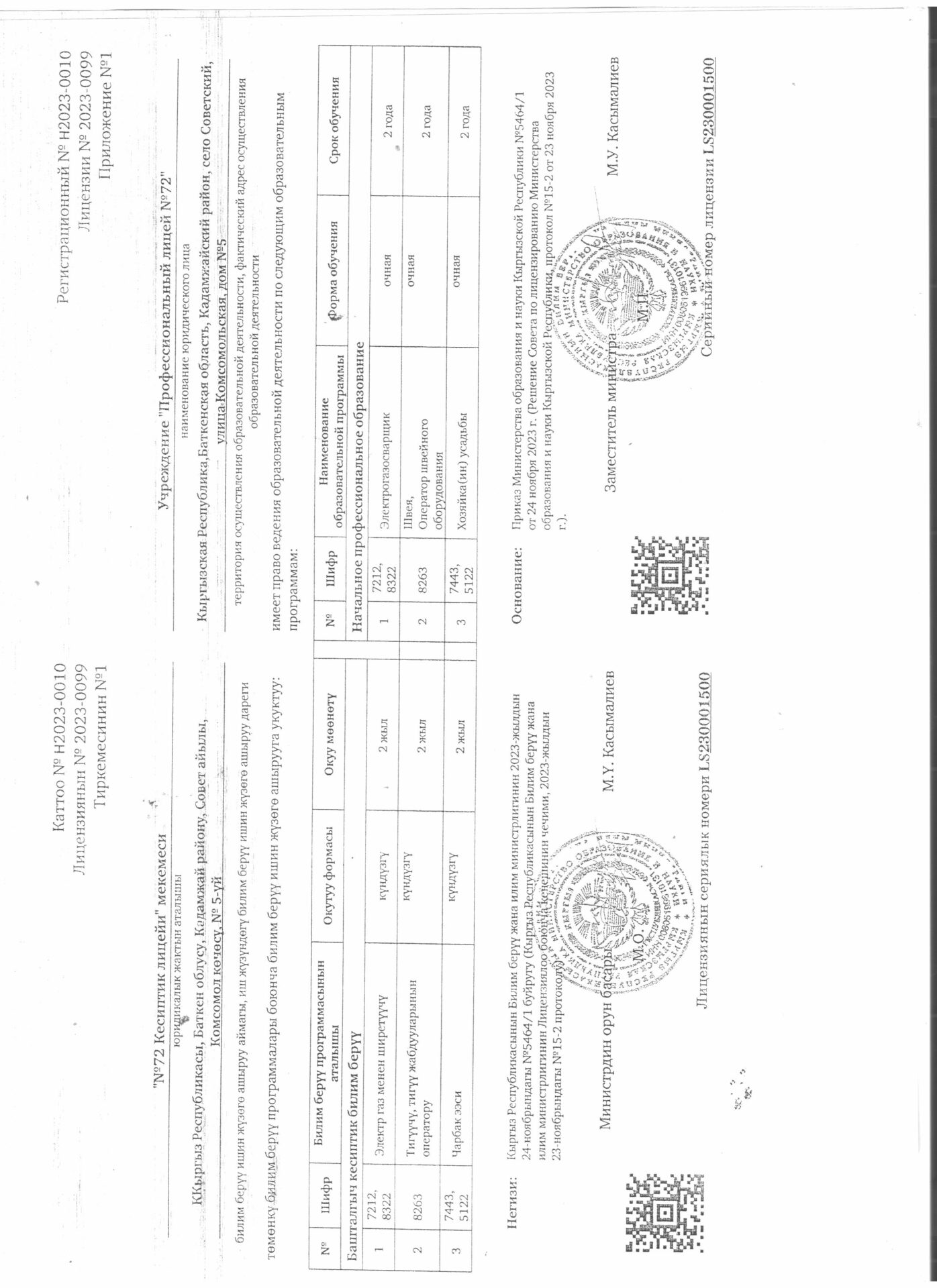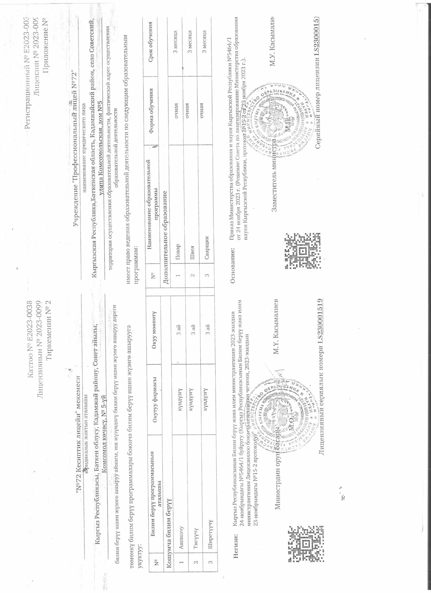 1 тиркеме Юридикалык күбөлүгү