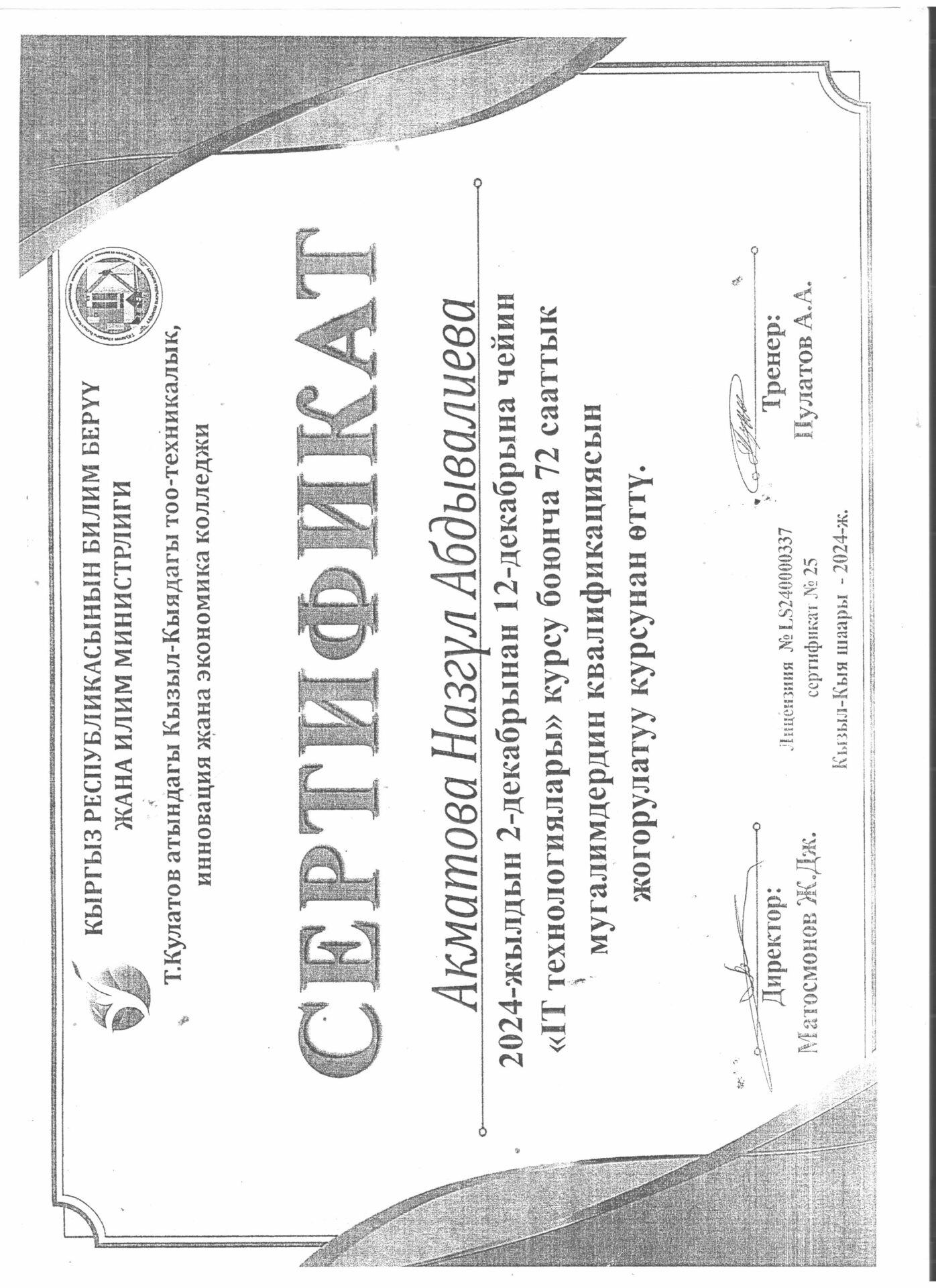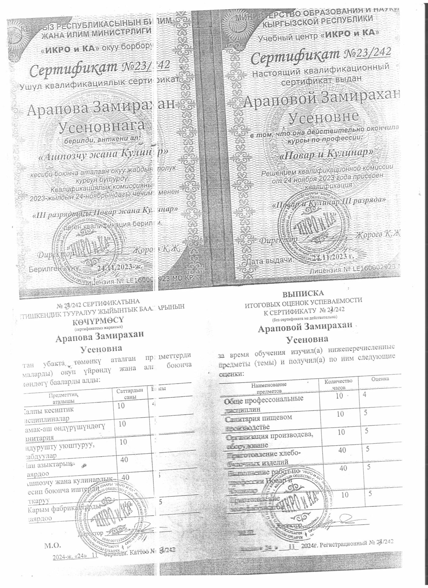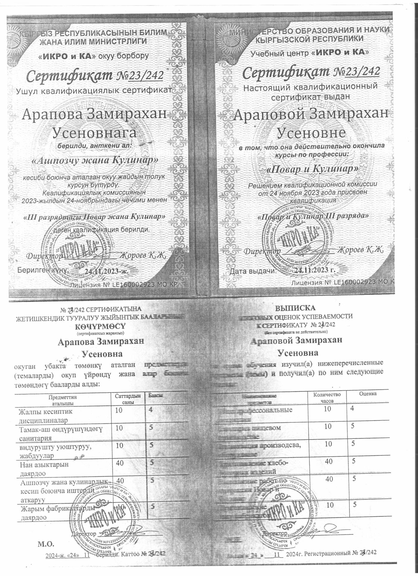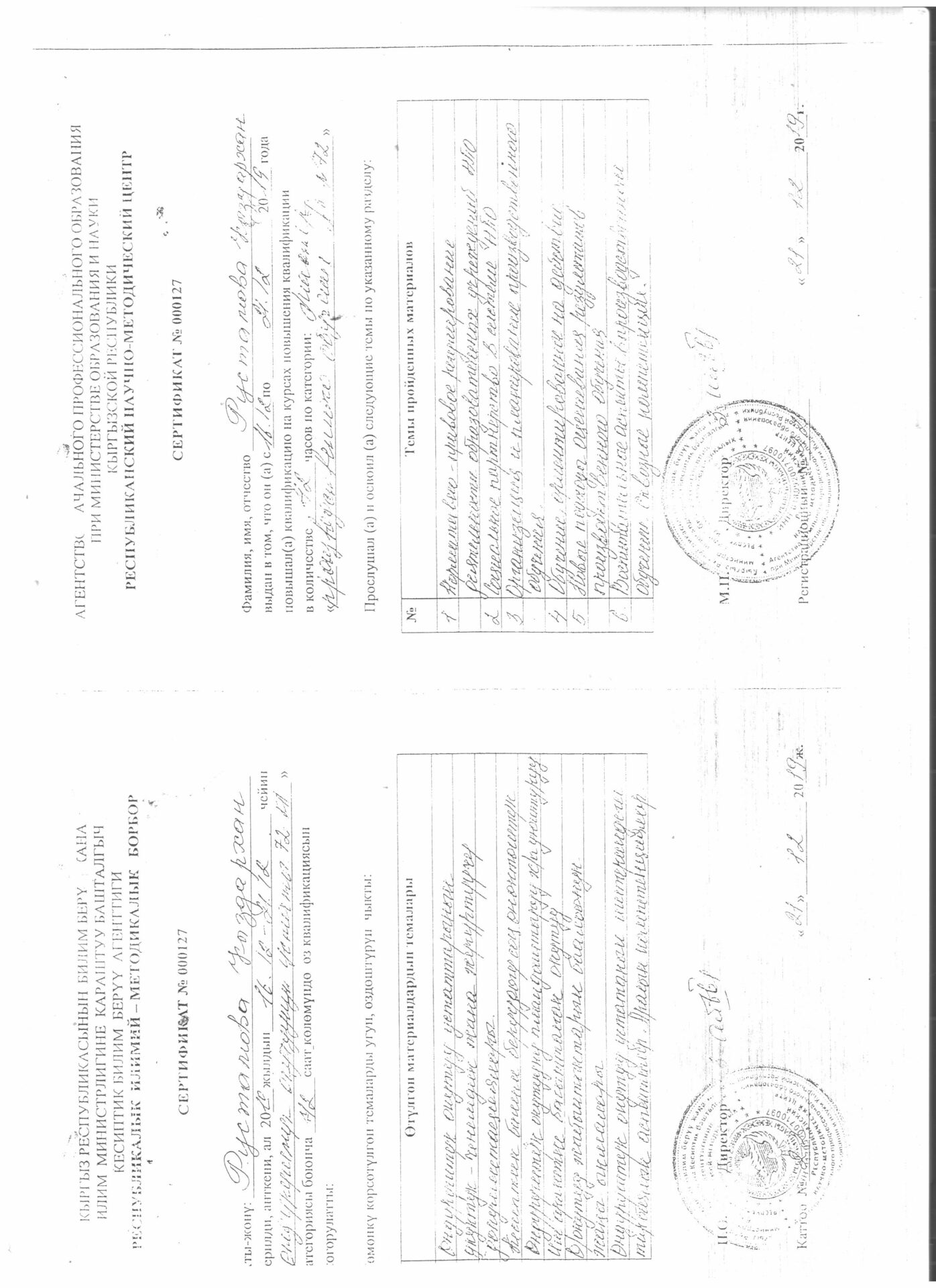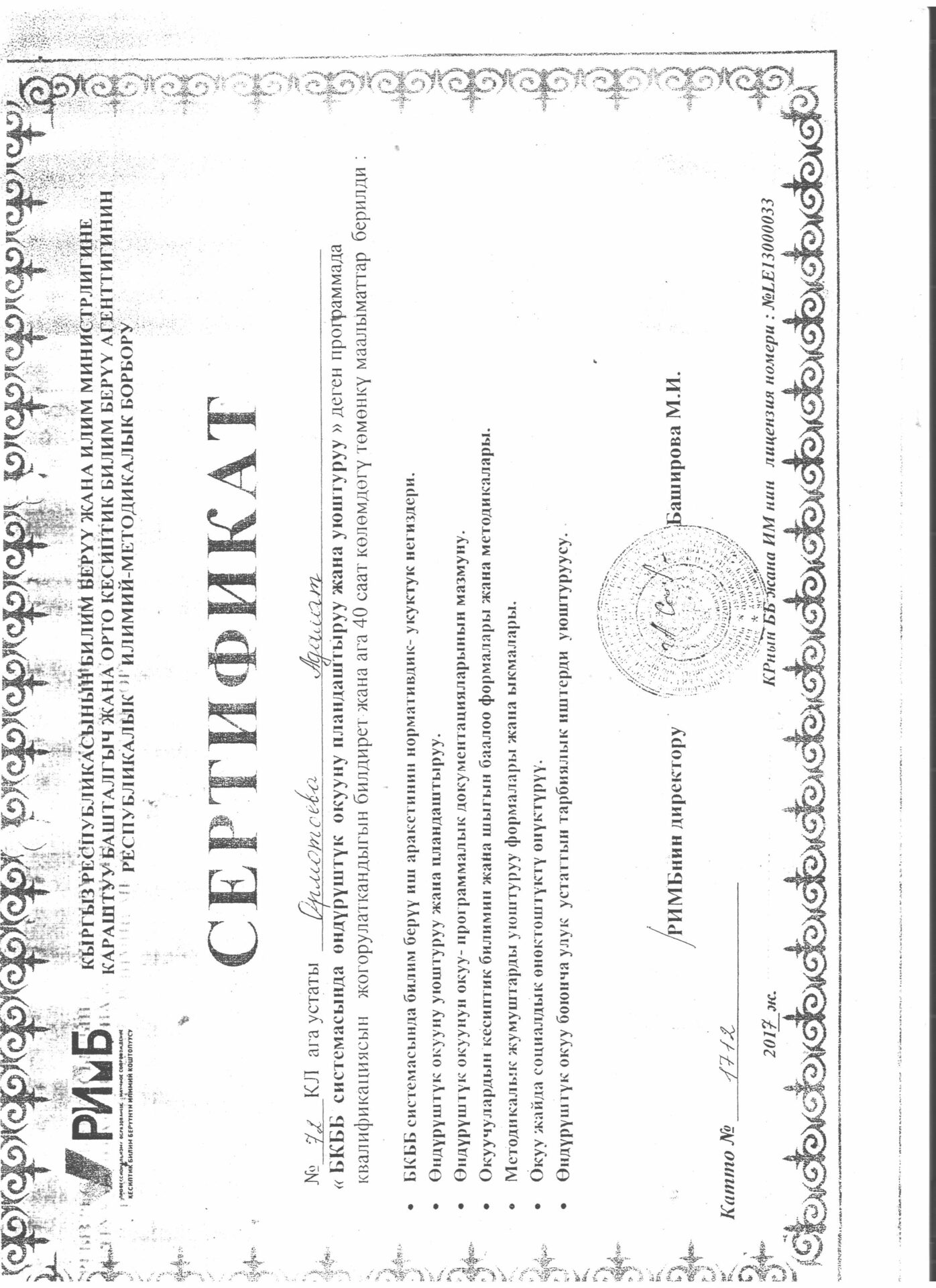 1 тиркеме Юридикалык күбөлүгү