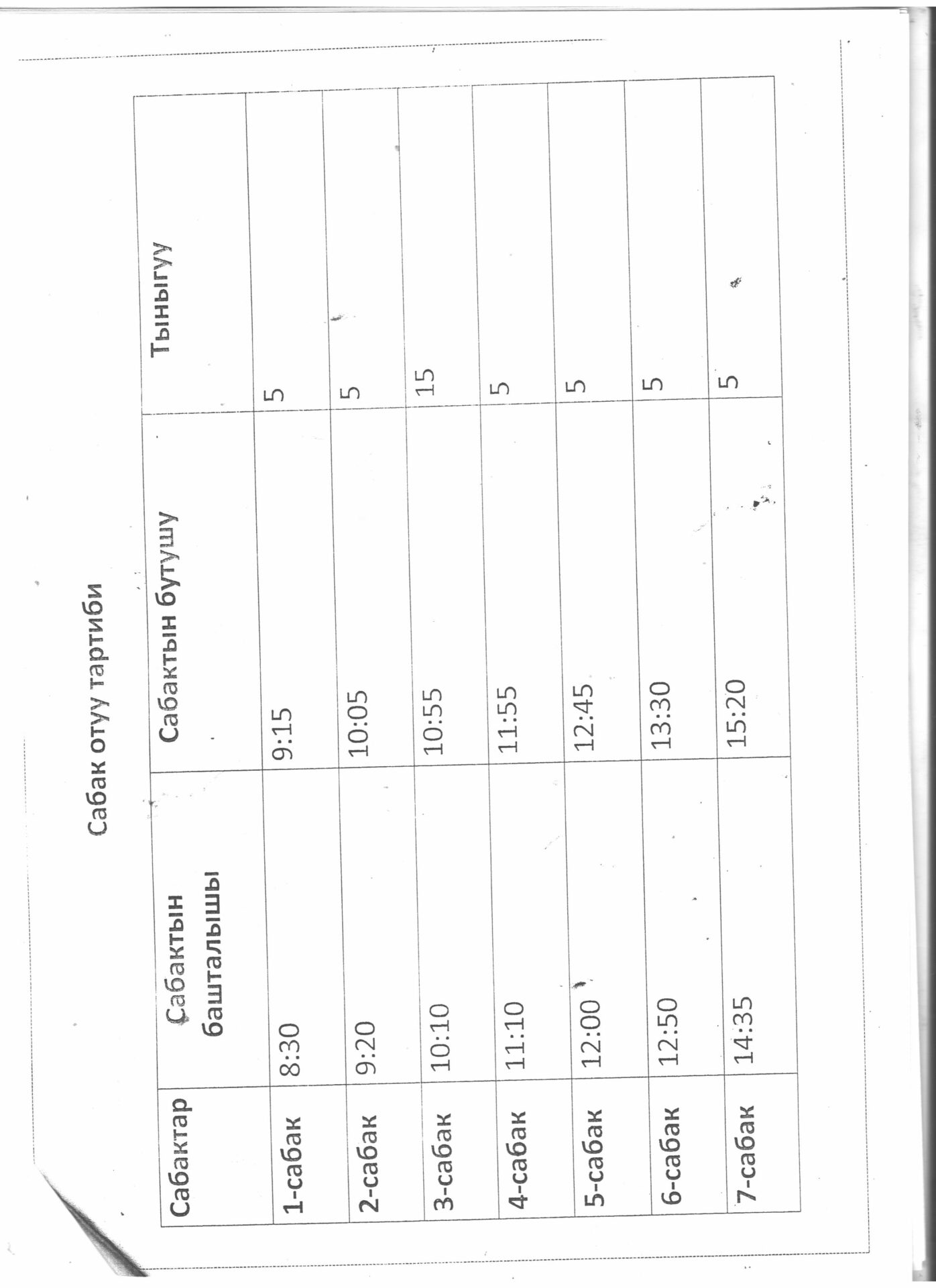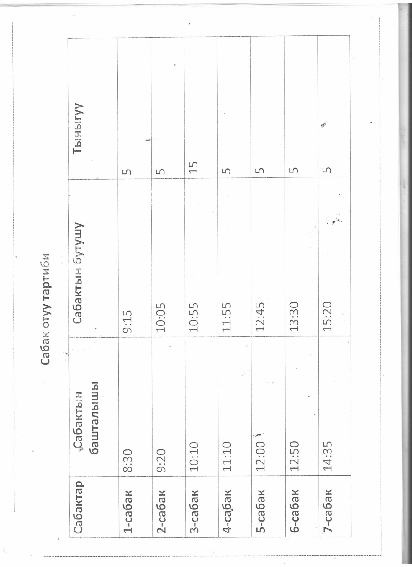 Сабактардын жүгүртмѳсү